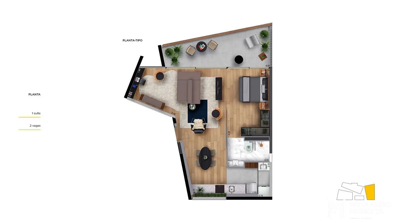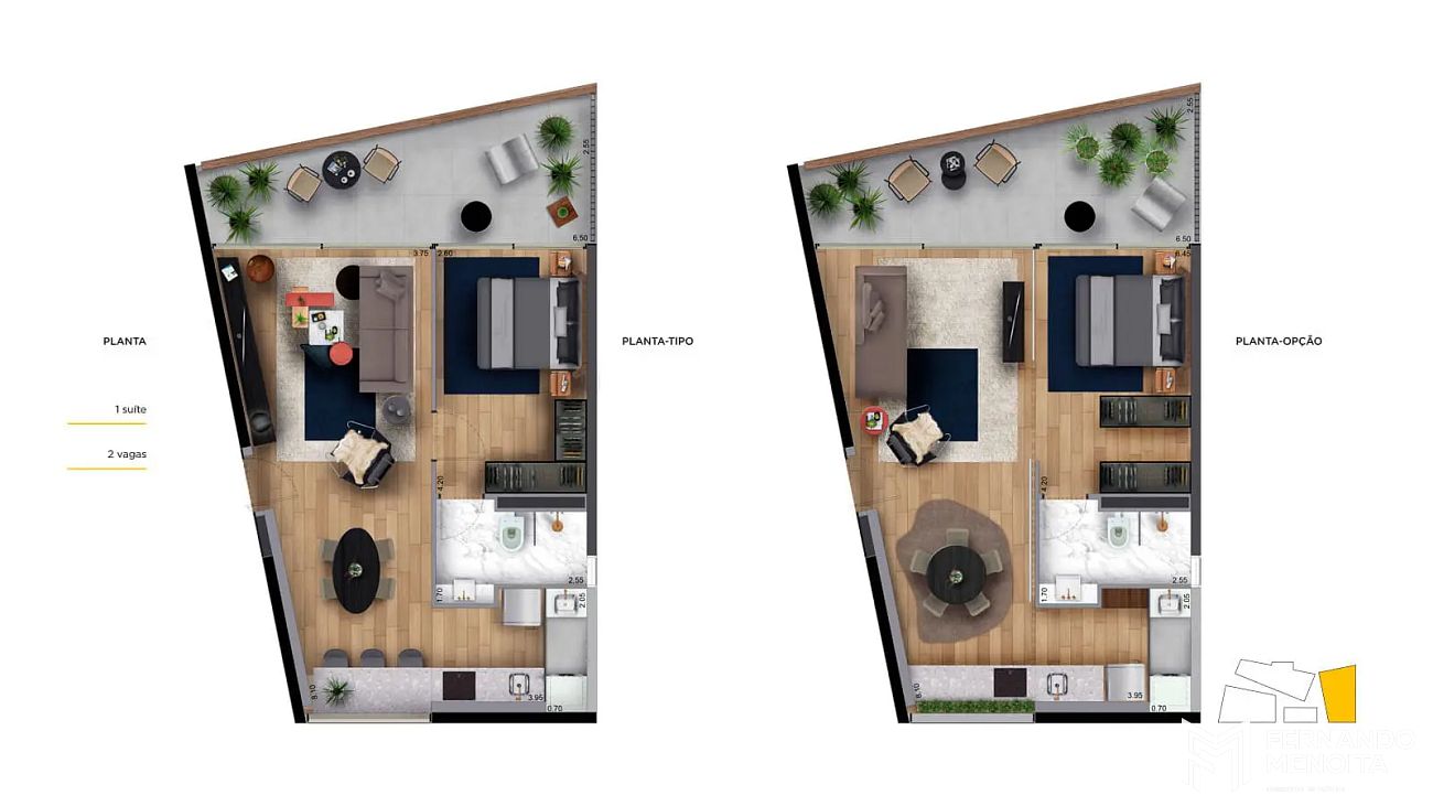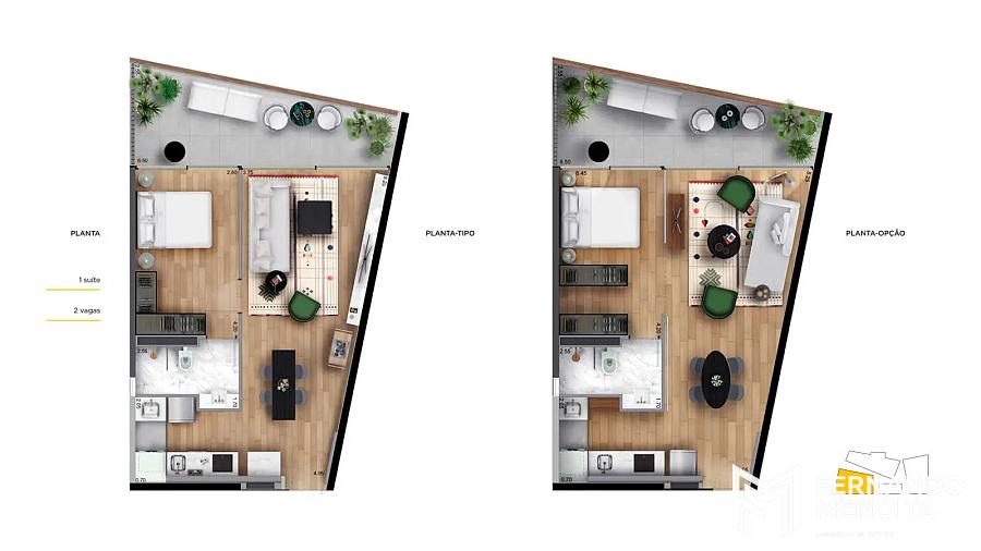 • 69 m² – 1 dormitório – 2 vagas