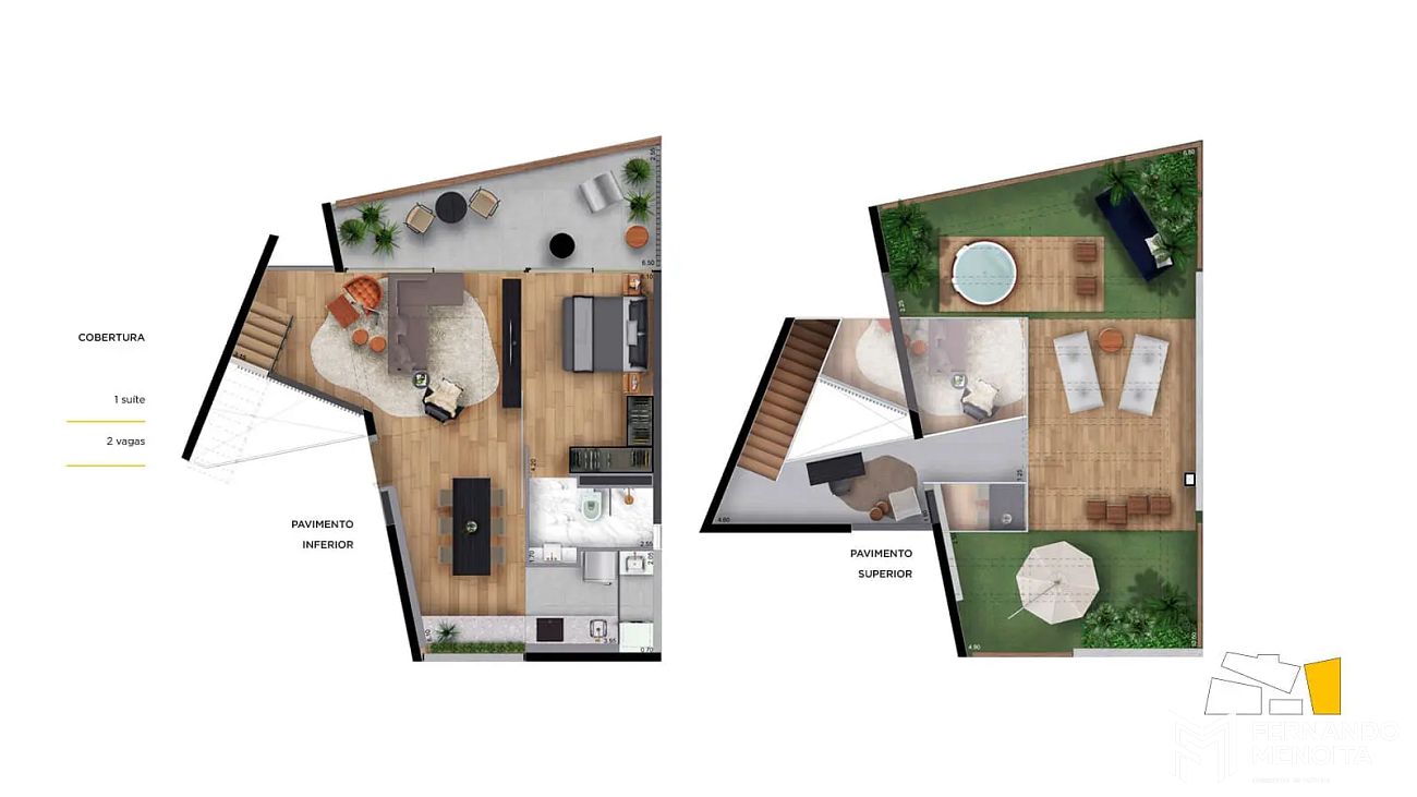 • 138 m² – cobertura – 1 dormitório – 2 vagas