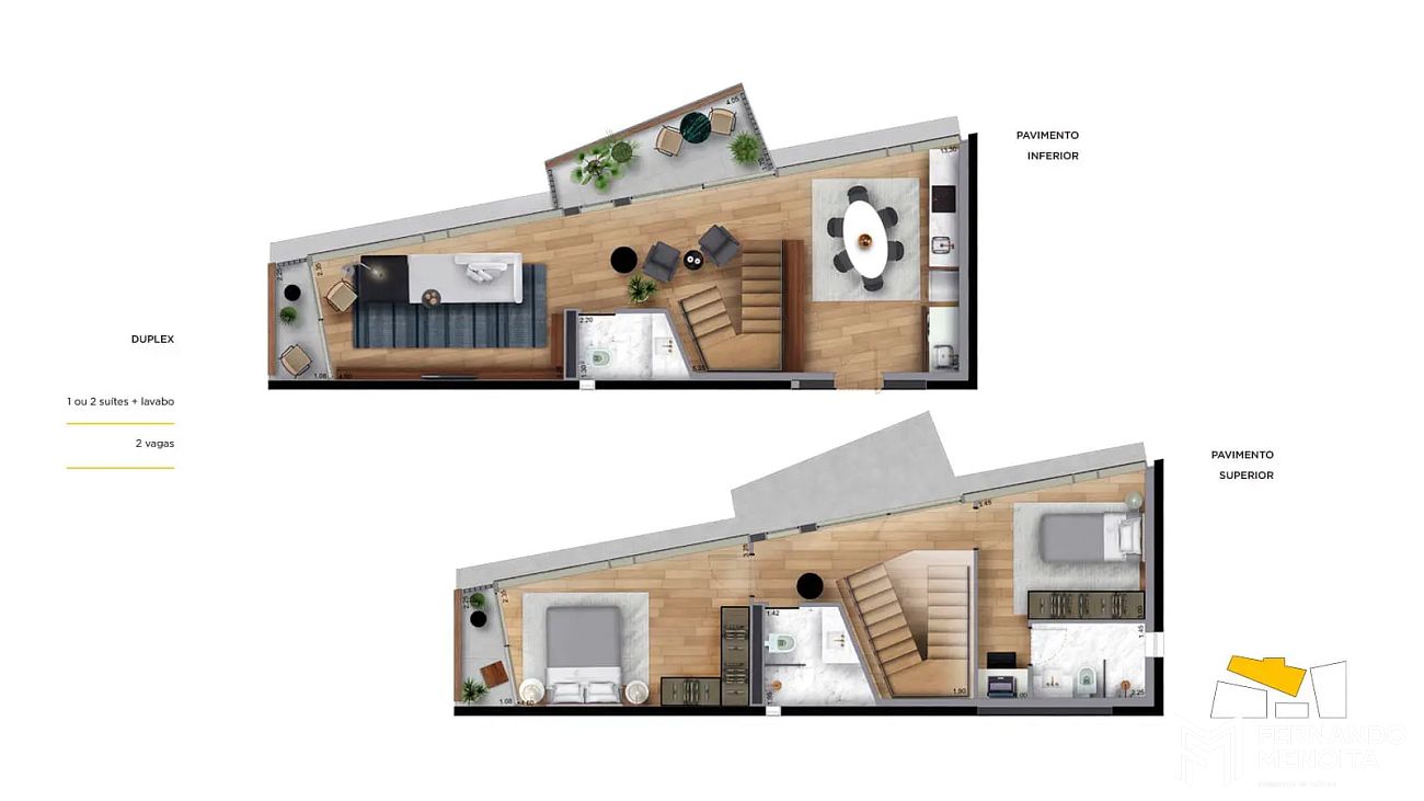 • 118 m² – duplex – 2 dormitórios – 2 vagas