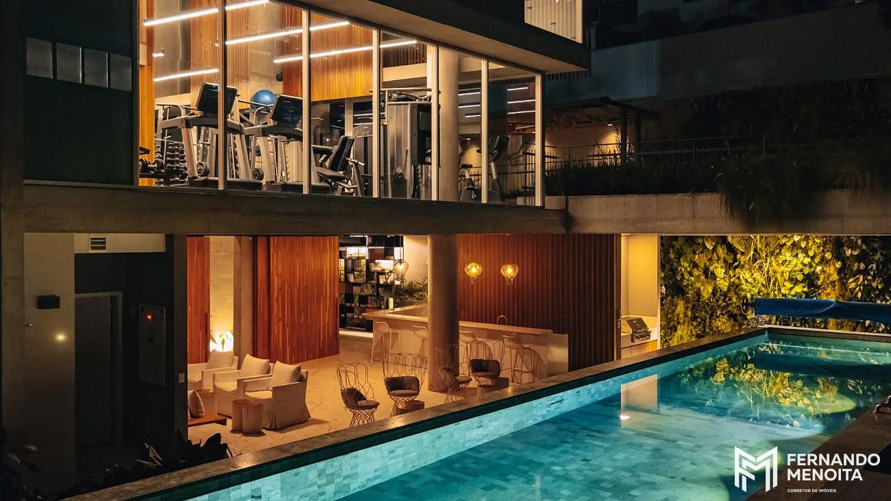 O projeto oferece uma experiência completa de moradia, com áreas comuns sofisticadas, climatizadas e sonorizadas, incluindo lounge, espaços de convivência, piscina com deck e solarium, fitness com pé-direito duplo e áreas externas integradas.