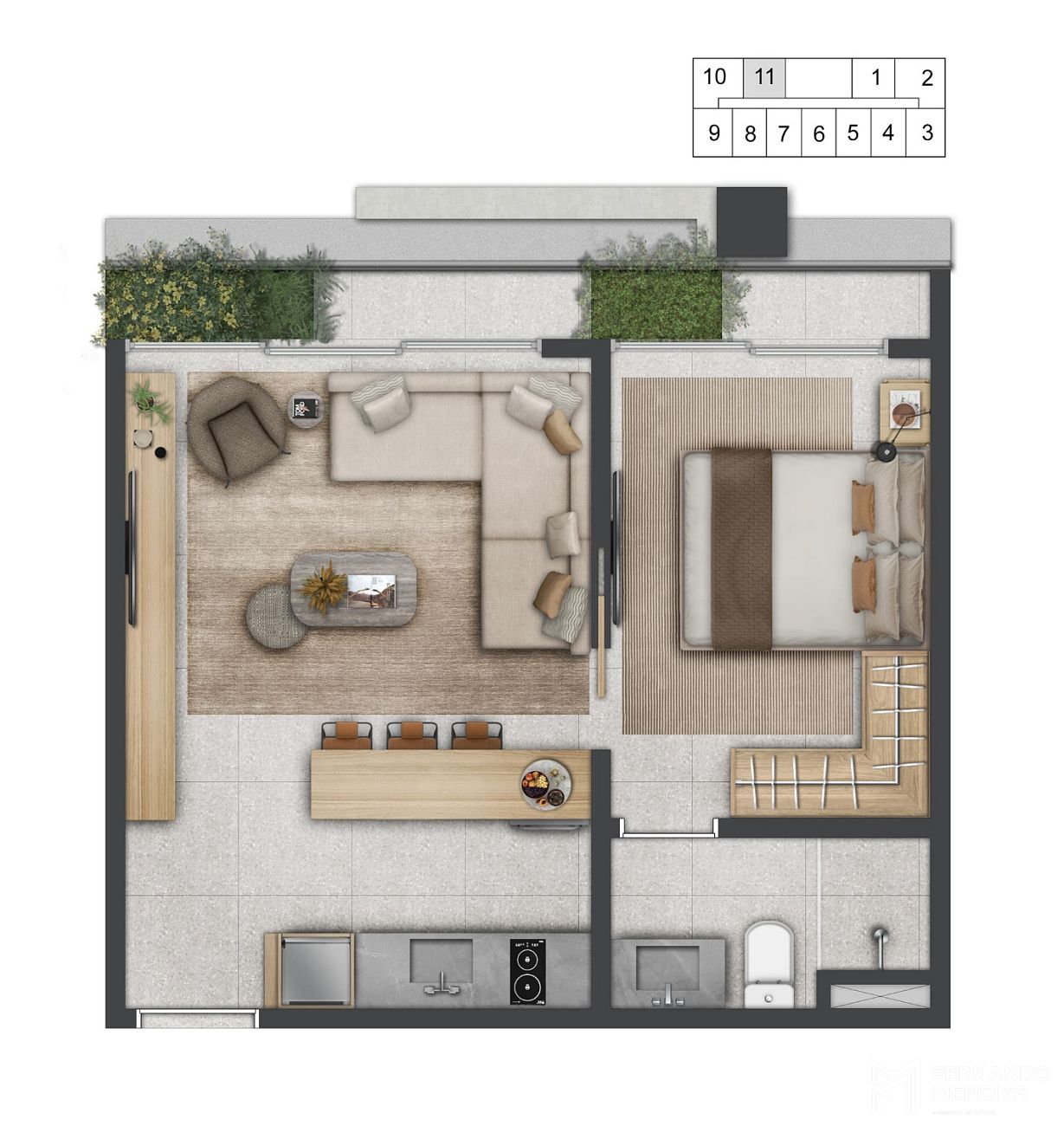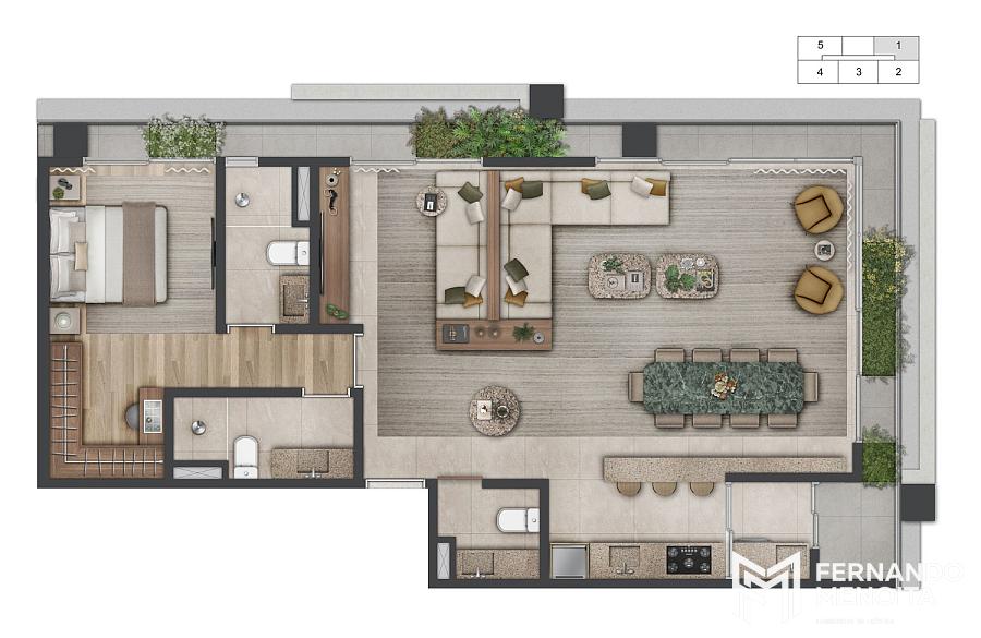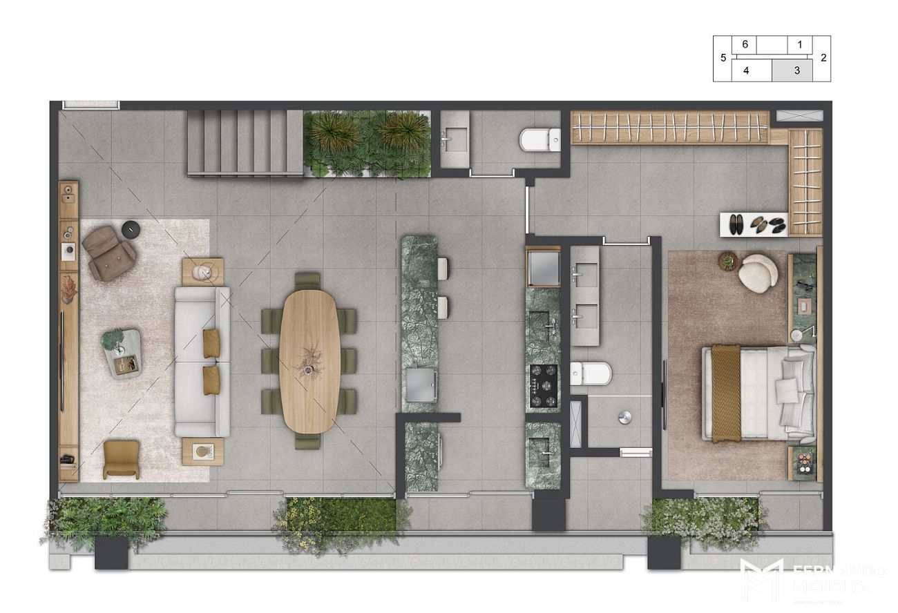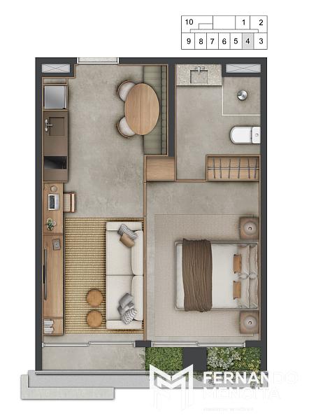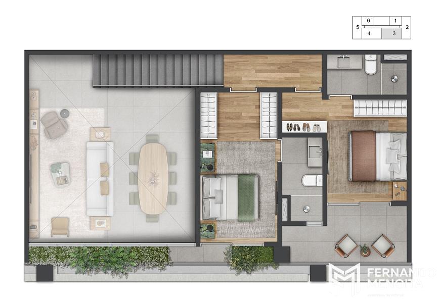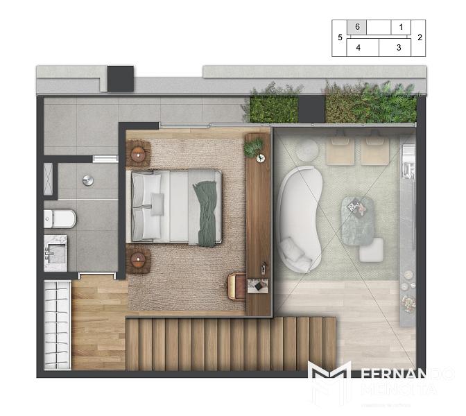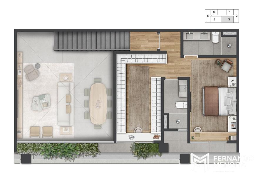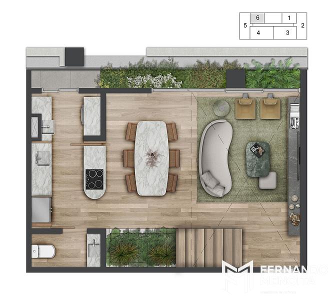 • Duplex 1 suíte: 77m²