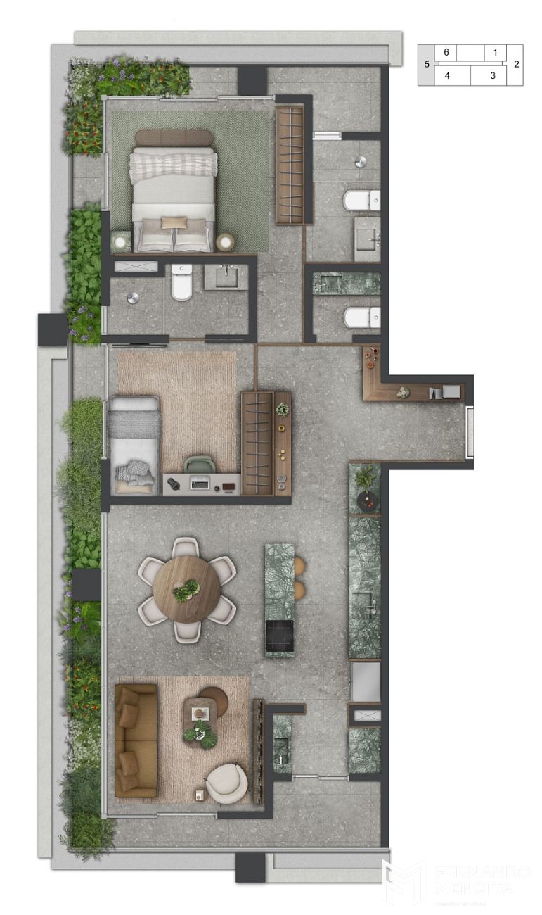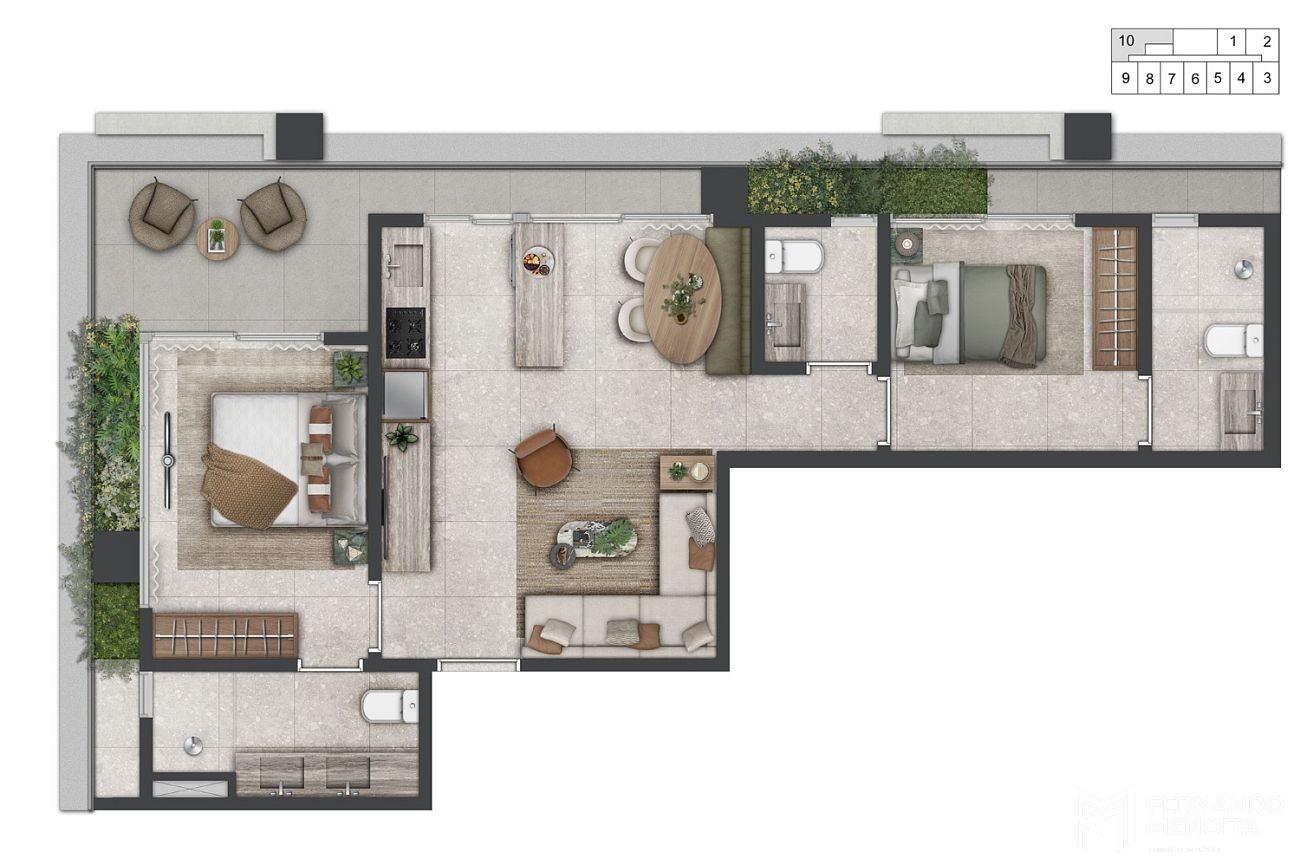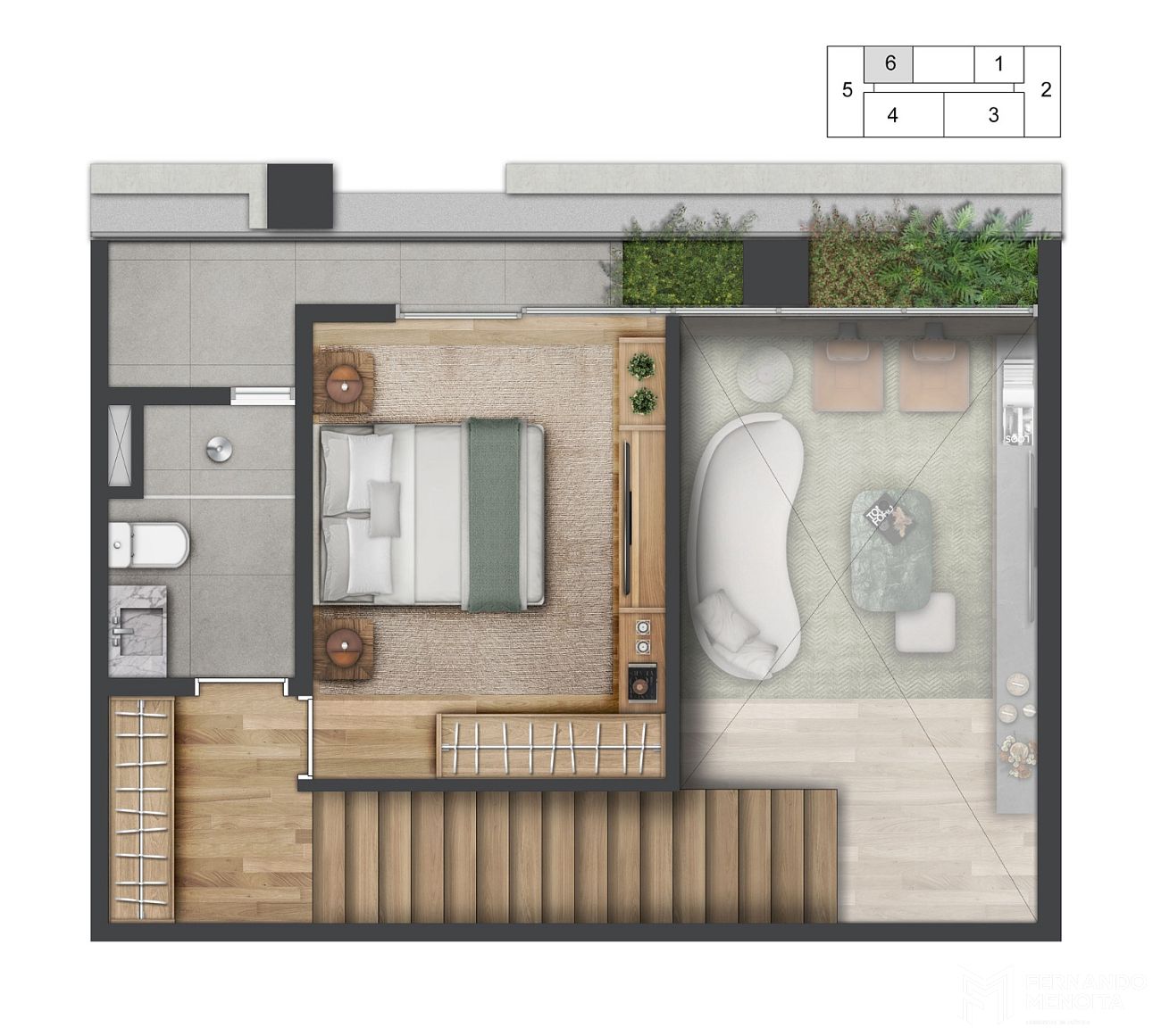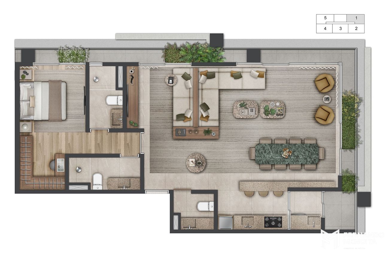 • Duplex 1 suíte: 77m²