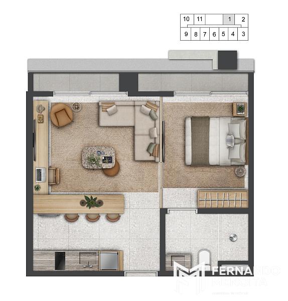 • Apartamentos 1 dormitório: 38m² a 52m²