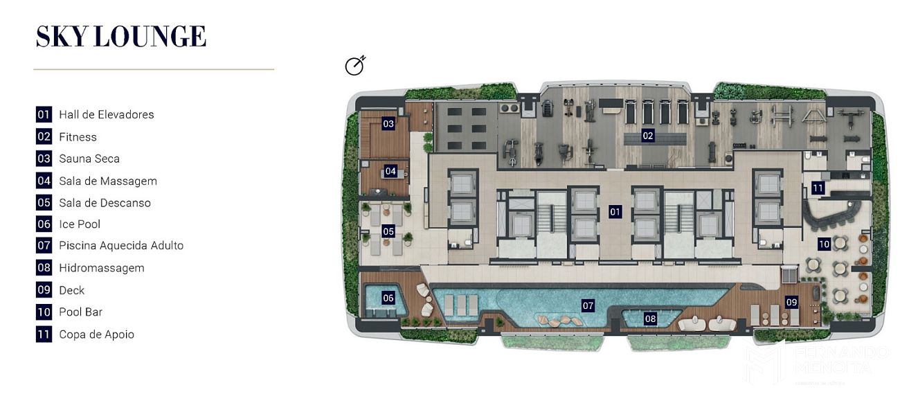 O lazer é um capítulo à parte: bosque privativo com dog park, piscina semiolímpica com borda infinita, beach tennis, spa completo, sky lounge com vista 360° e uma estrutura de amenities digna de hotéis de luxo. Tudo isso integrado a um bairro planejado com shopping center, centros médicos, educação, áreas verdes e futuras conexões viárias e de transporte público.