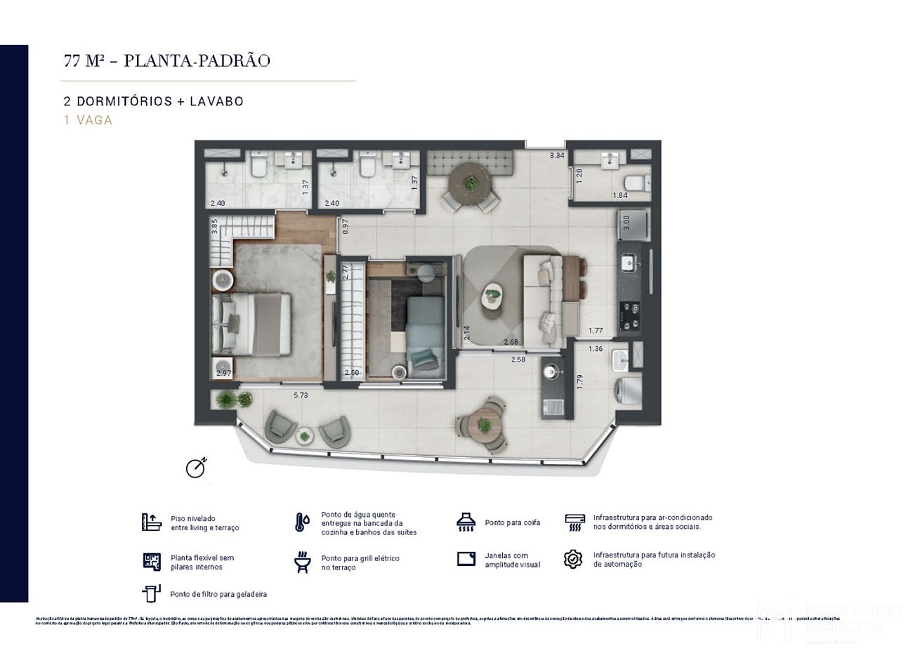 • Apartamentos: 77m², 106m², 122m² e 129m²