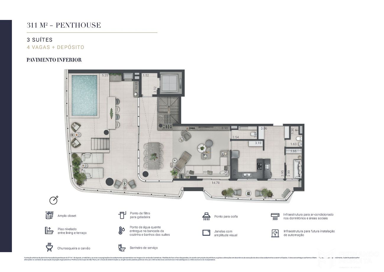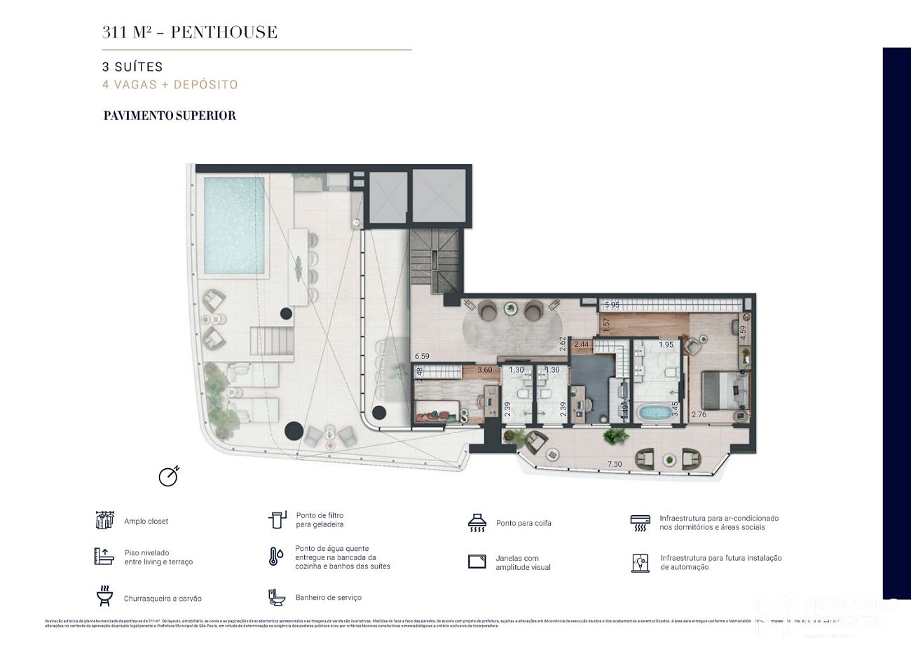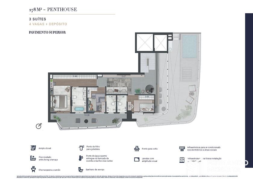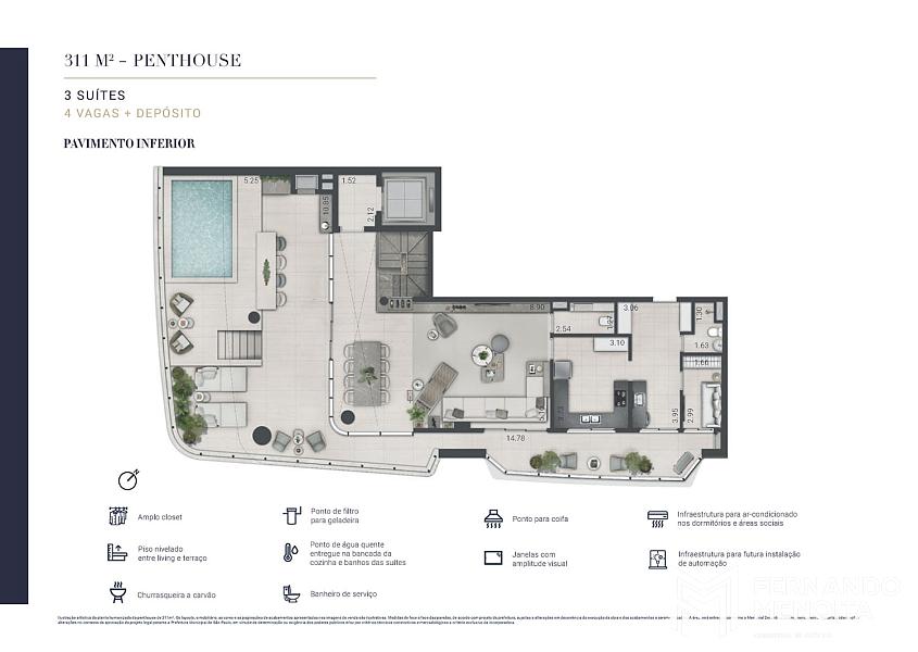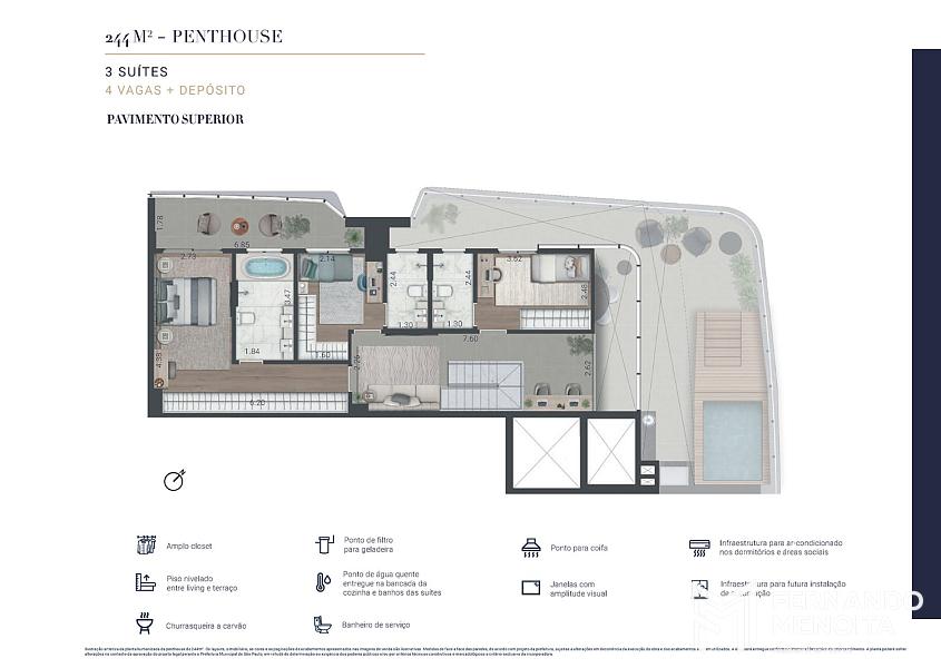 • Penthouses: 244m², 278m², 288m² e 311m²