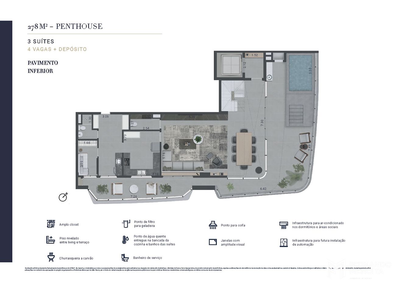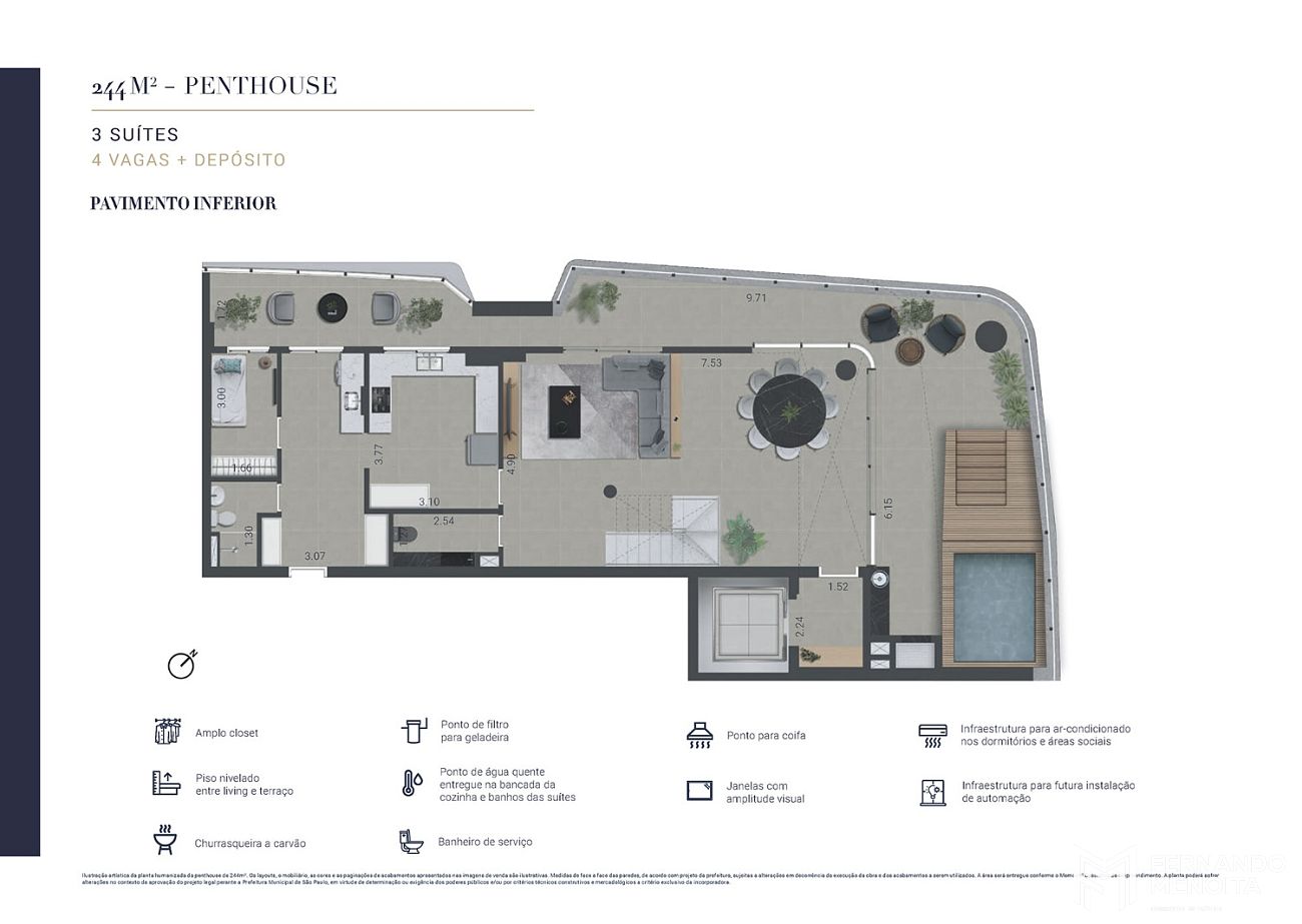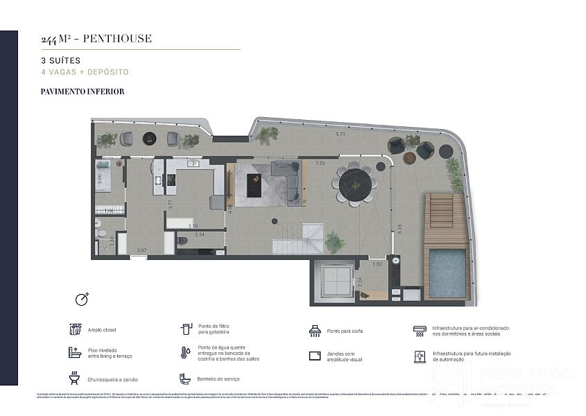 • Penthouses: 244m², 278m², 288m² e 311m²