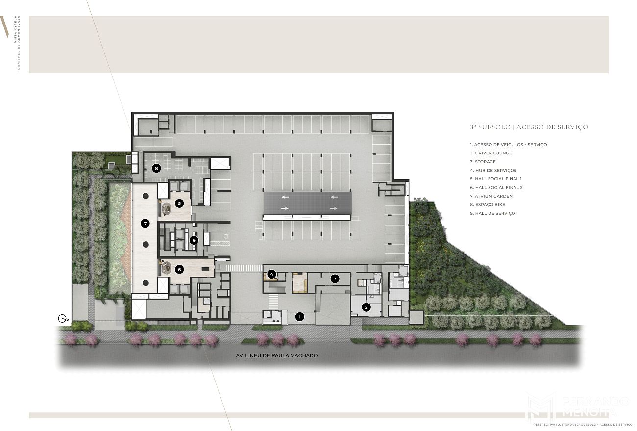 O material também destaca o compromisso com sustentabilidade por meio da certificação AQUA-HQE™, integração paisagística, redução no consumo de água e energia, gestão eficiente de resíduos e consultoria em desempenho térmico, lumínico e acústico.