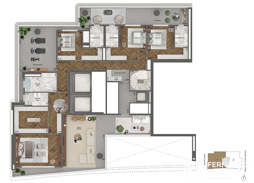 • 2 elevadores sociais com controle de acesso e velocidade de 4 m/s