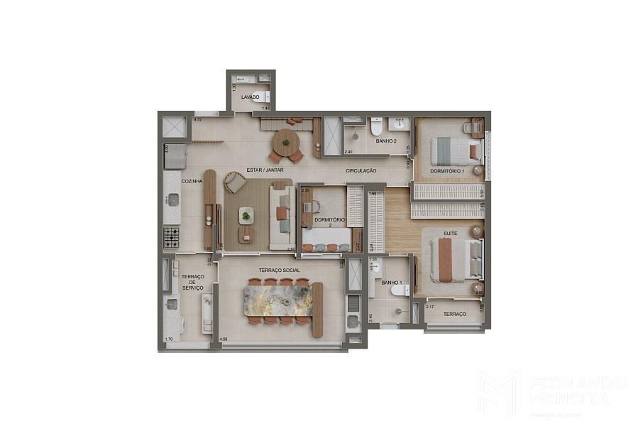 • 97 m² — 3 dormitórios (1 suíte) com lavabo