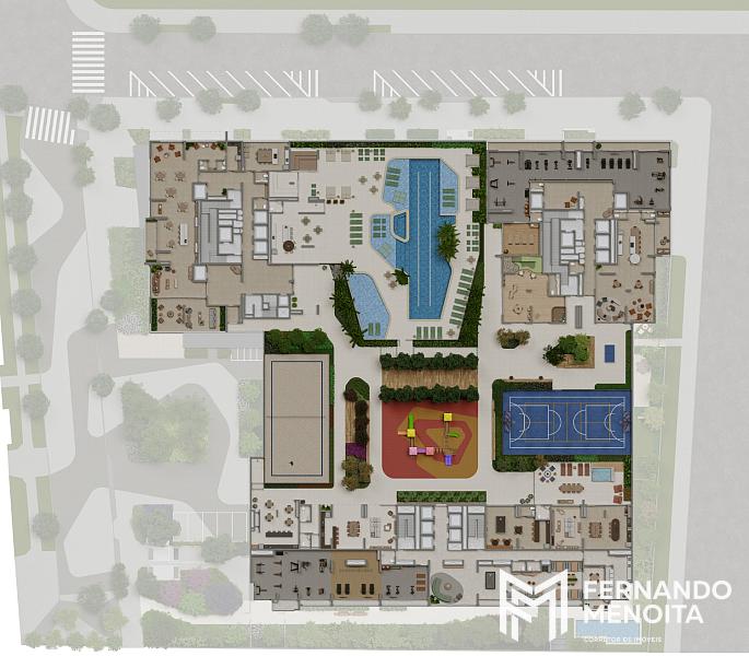 O empreendimento adota o conceito de condomínio clube, com extensa infraestrutura de lazer, esportes, convivência e bem-estar distribuída entre as torres, incluindo piscinas, fitness completo, quadras esportivas, espaços gourmet, áreas infantis e ambientes de relaxamento.