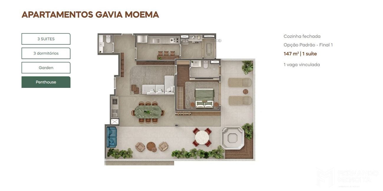 • Penthouse (1 suíte): 128 m², 147 m² e 149 m² | 1 vaga