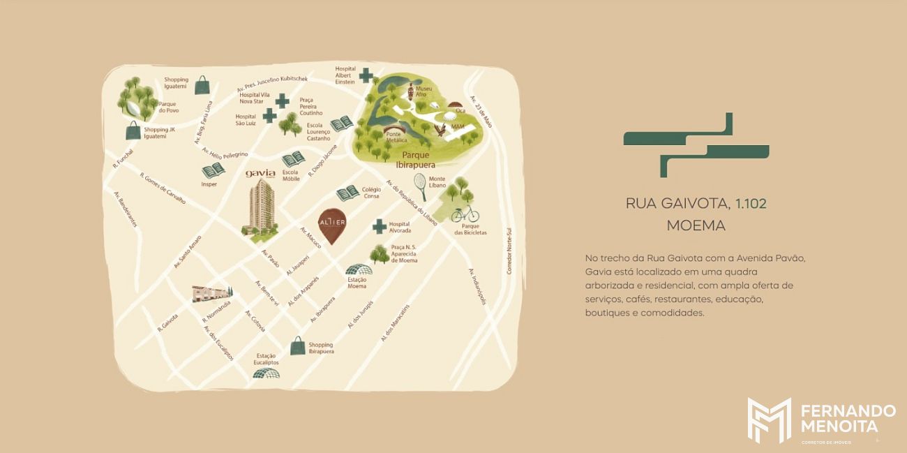 O Gavia Moema é um empreendimento residencial localizado na Rua Gaivota, 1102, no bairro de Moema, uma das regiões mais valorizadas e desejadas de São Paulo.