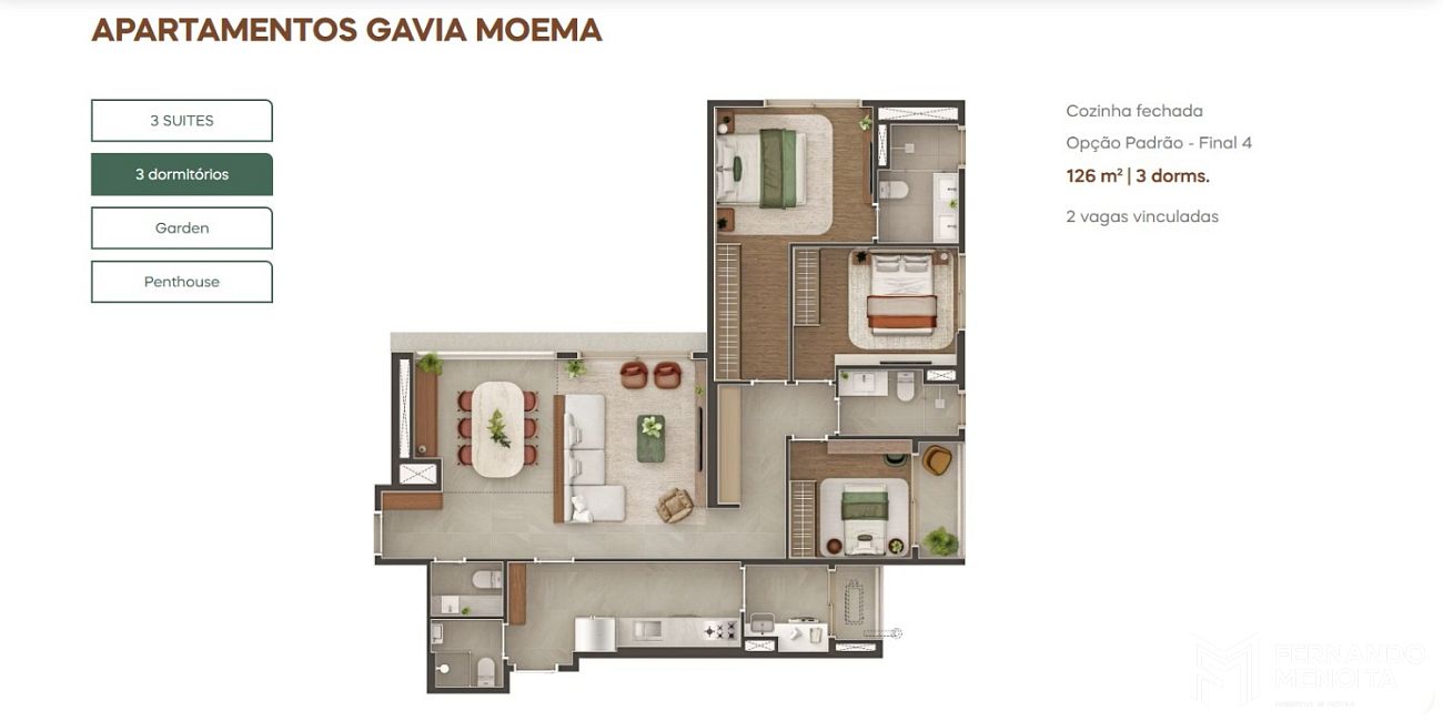 • 3 dormitórios (1 suíte): 124 m² e 126 m² | 2 vagas