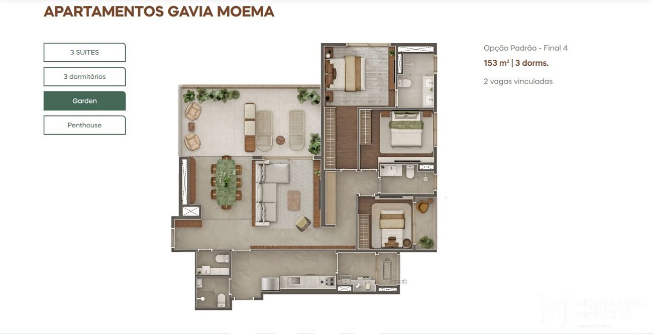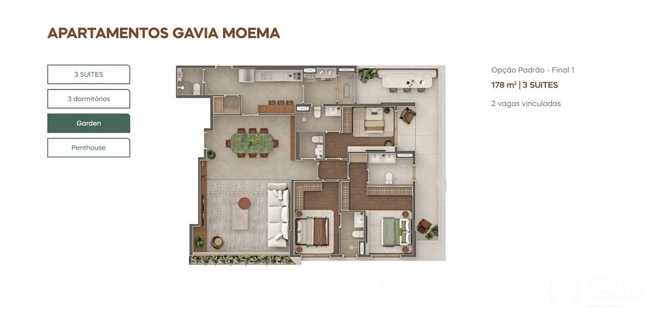 • Garden 3 suítes: 178 m² e 181 m² | 2 vagas