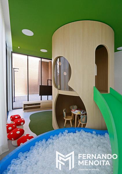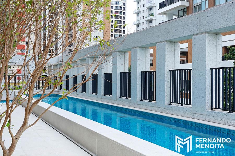 O lazer é completo e contempla piscina com raia de 25 metros, piscina infantil, fitness, salão de festas gourmet, espaço kids, playground e áreas de apoio, tudo entregue equipado e decorado conforme memorial descritivo.