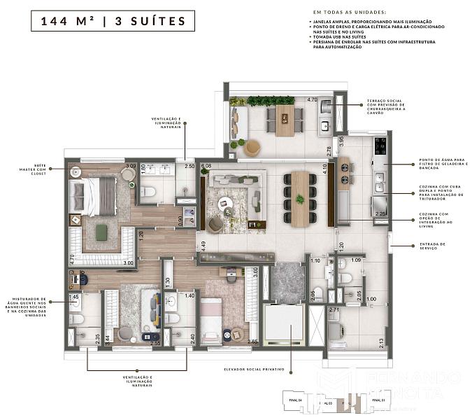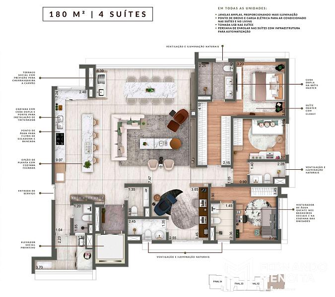 • Ponto de dreno e carga elétrica para ar-condicionado nas suítes e no living