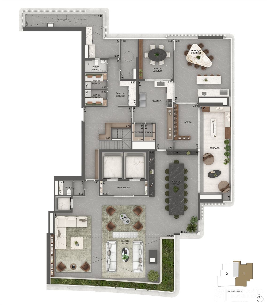 • Final 2 — 2 unidades de 708,50 m² — 5 vagas vinculadas