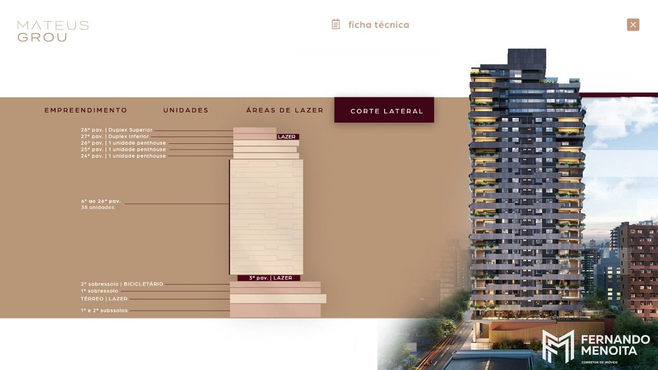 • Pavimentos: 30 (3 subsolos + térreo + 26 pavimentos)