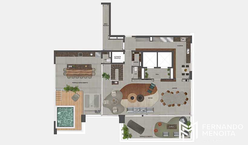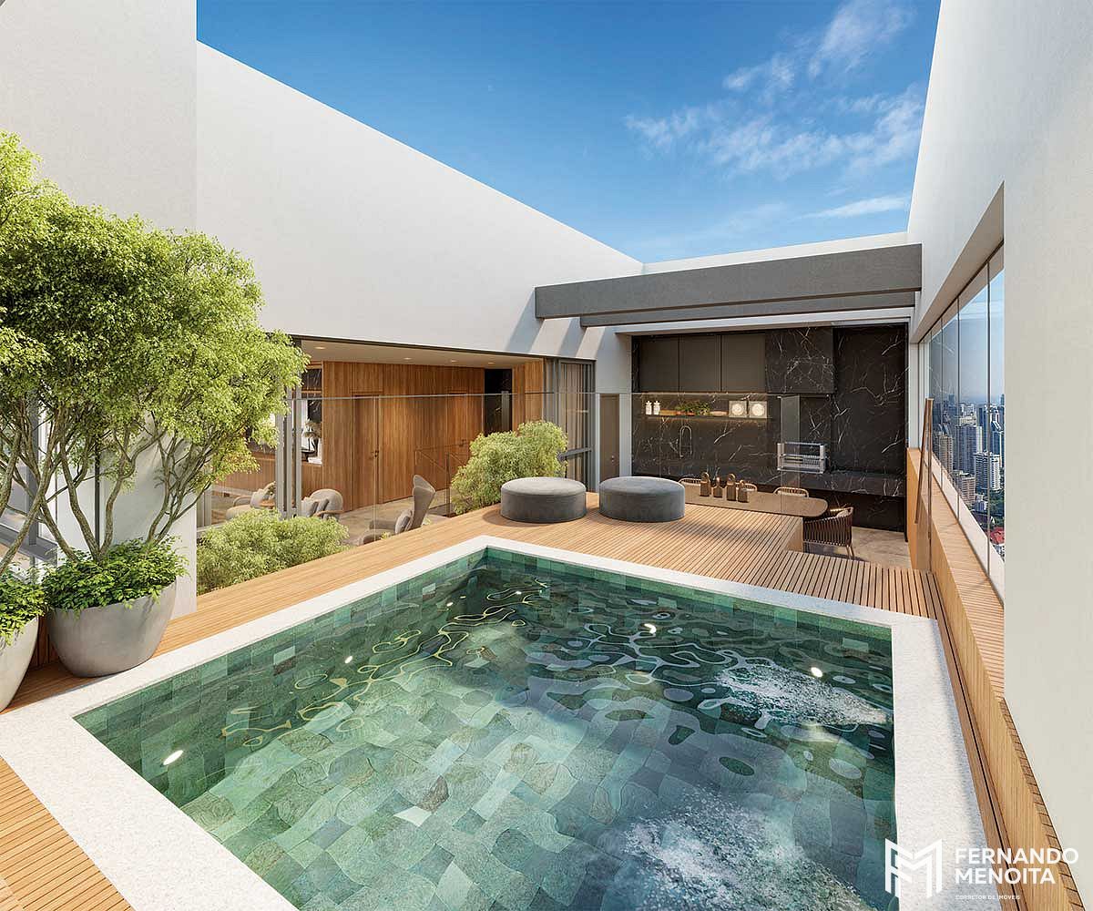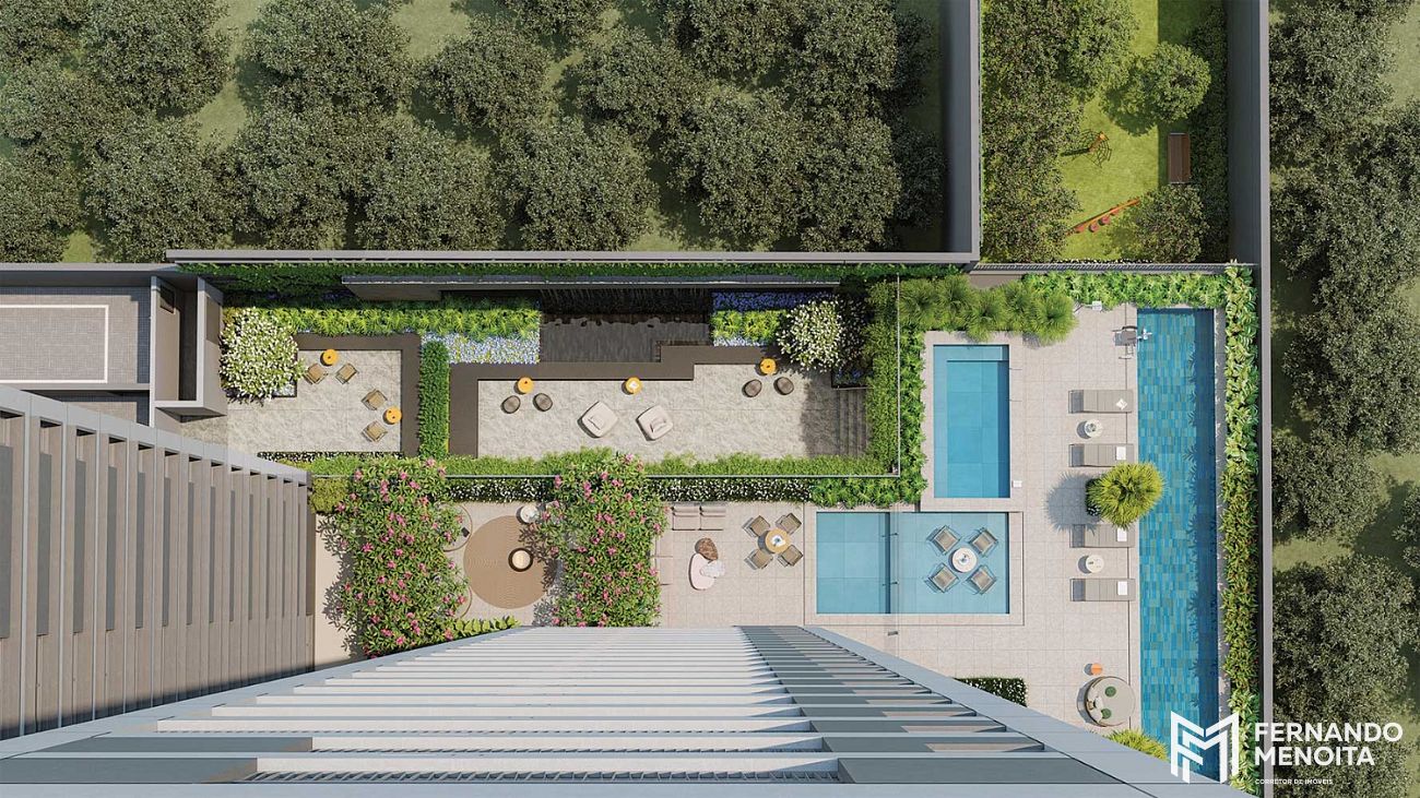 O projeto de paisagismo leva a assinatura de Benedito Abbud, enquanto os interiores são concebidos por Carlos Rossi, criando ambientes sofisticados, acolhedores e perfeitamente integrados ao conceito de bem-estar.