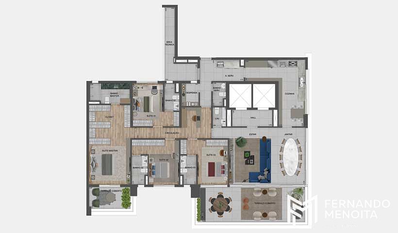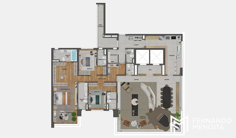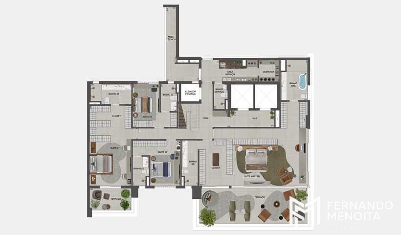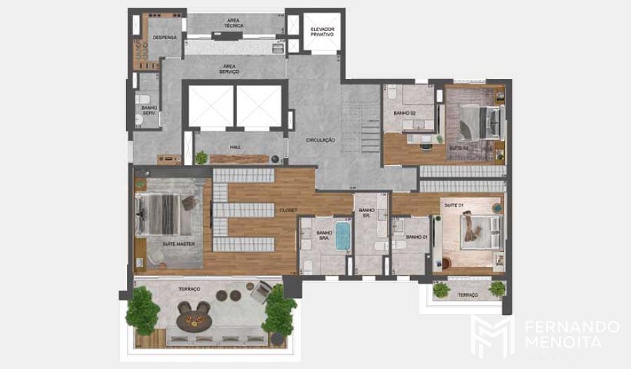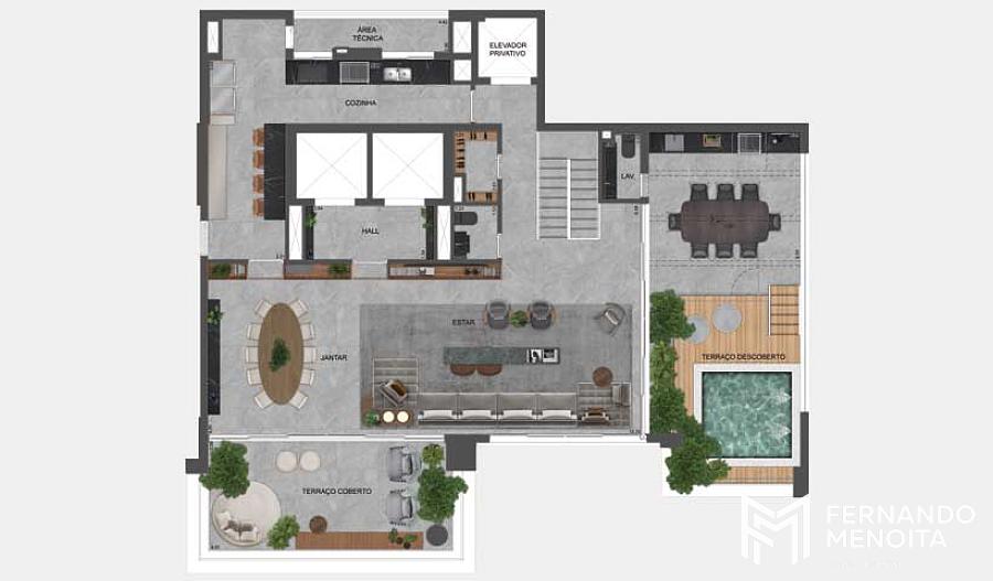 São apartamentos amplos de 215 m² e 290 m², com 3 e 4 suítes, além de unidades garden, duplex e long stay, todos com hall social privativo, pé-direito generoso e acabamentos de altíssimo nível.