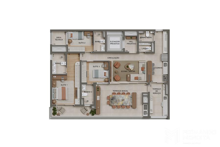 • 330 m² — Penthouse (99 m² de terraço descoberto) — 4 suítes