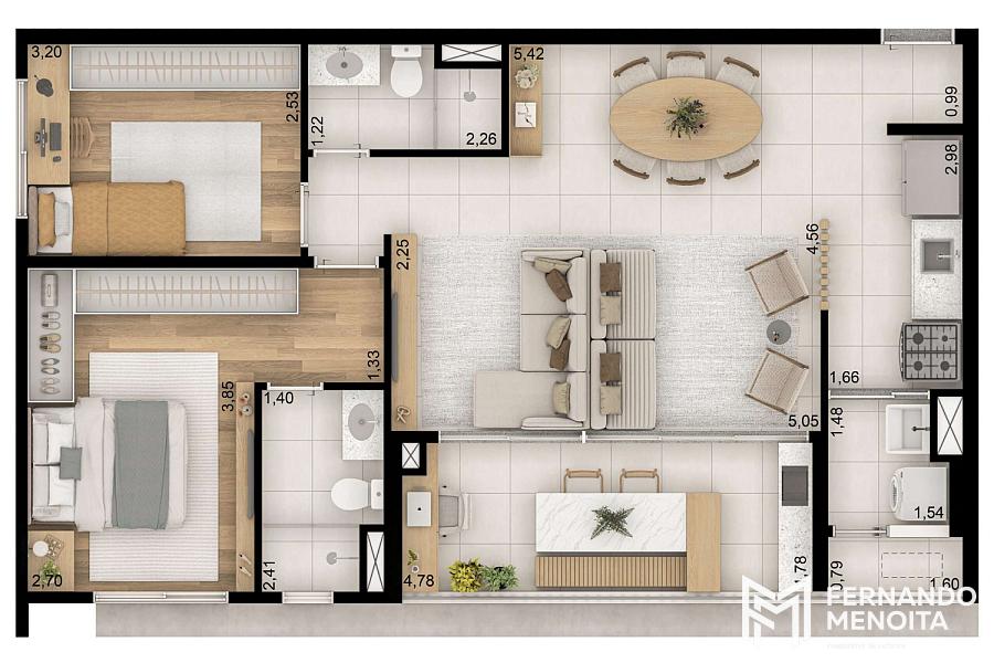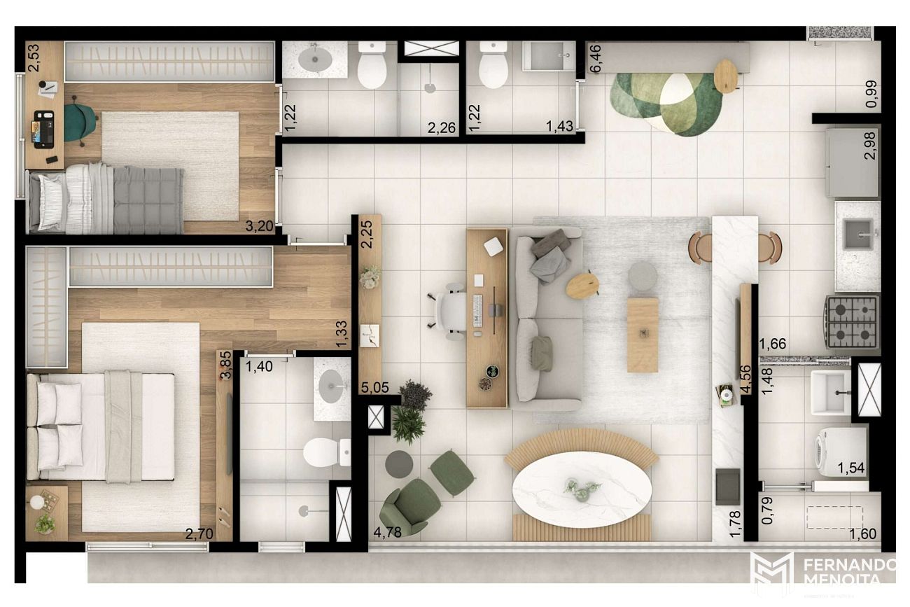 3 dormitórios (2 suítes)