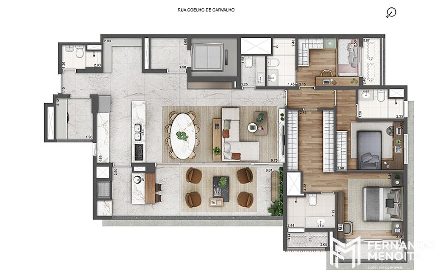 • 4 dormitórios com office exclusivo – 180,94 m²
