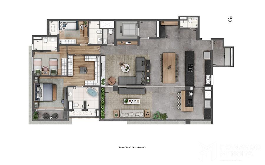 • 4 dormitórios duplex com office exclusivo – 313,70 m²