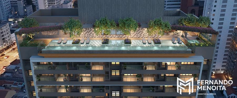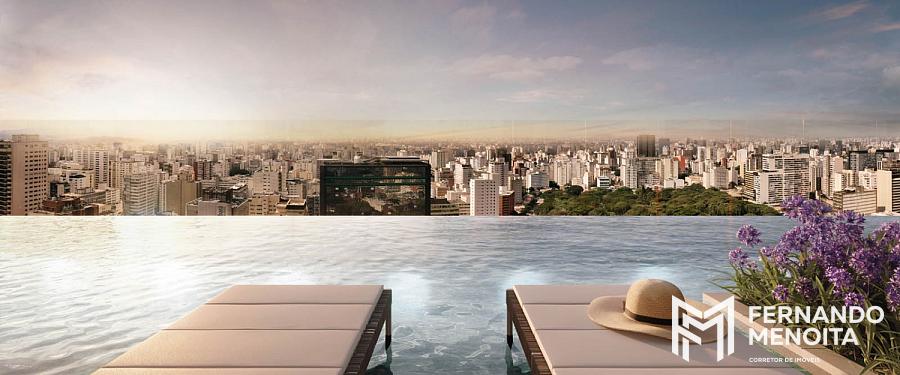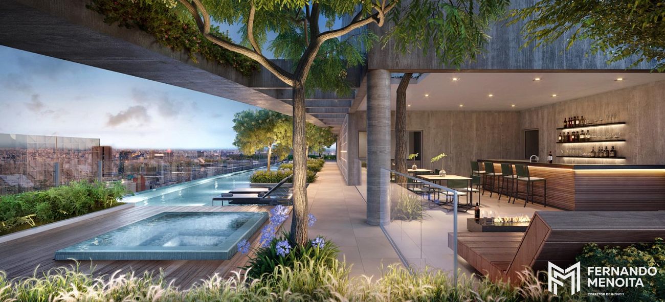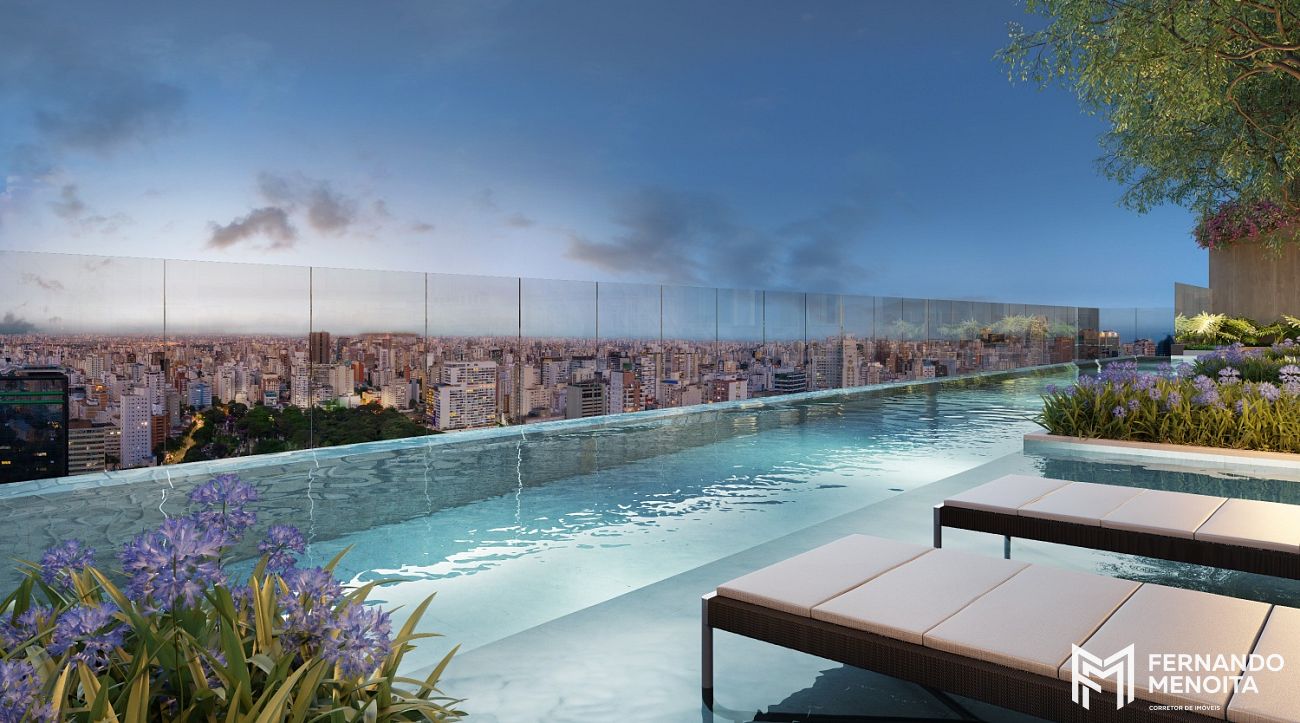 O destaque fica para o rooftop com piscina de borda infinita e áreas de lazer com vista privilegiada da cidade, criando uma experiência exclusiva de morar em Higienópolis.