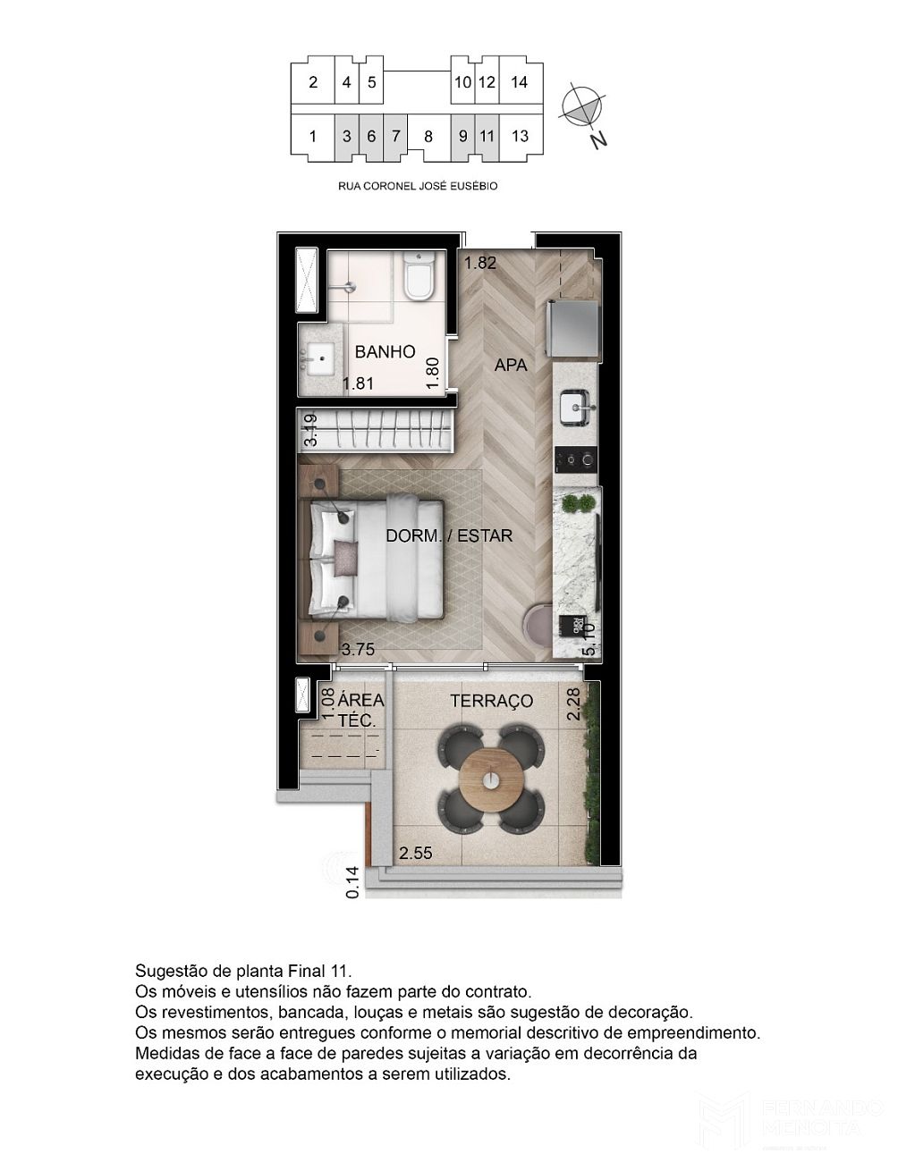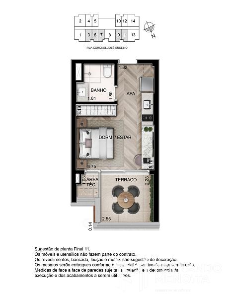 • Os finais das unidades residenciais e conjuntos comerciais terão pequenas variações de metragem.