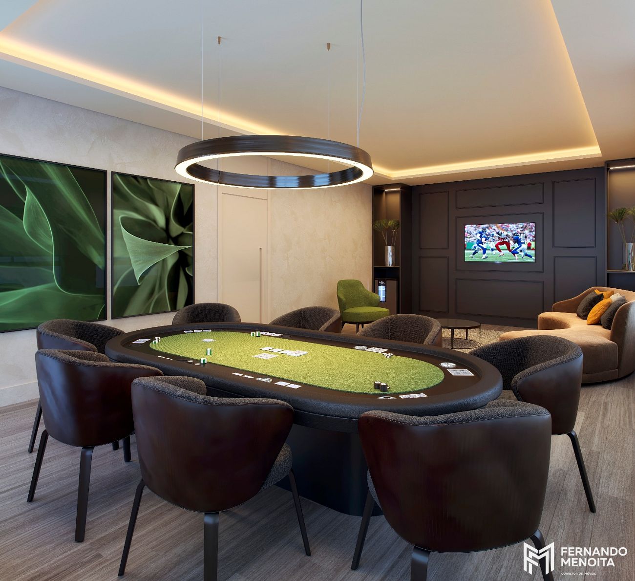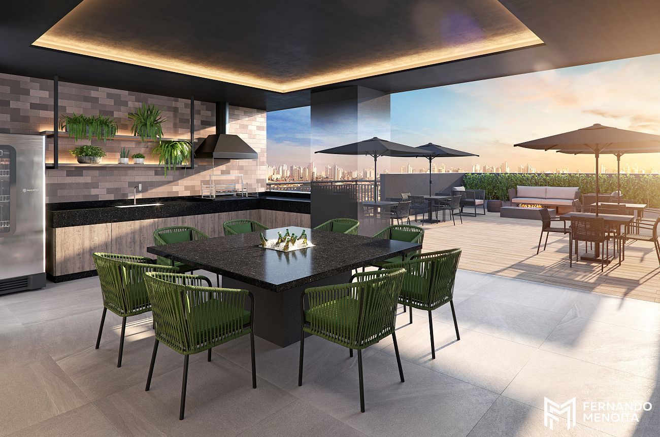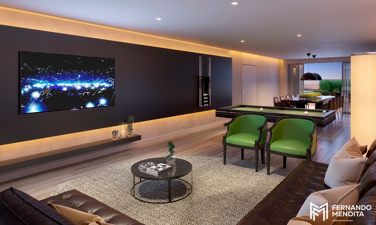 O lazer é amplo e sofisticado, com ambientes inspirados no design internacional, como salão de festas com 140 m², fitness com 150 m², pet place com 130 m², além de espaços como coworking pub, jogos teens, brinquedoteca, churrasqueira, piscina adulto e infantil, pool garden e rooftop com private house & spa, poker e sunset barbecue.