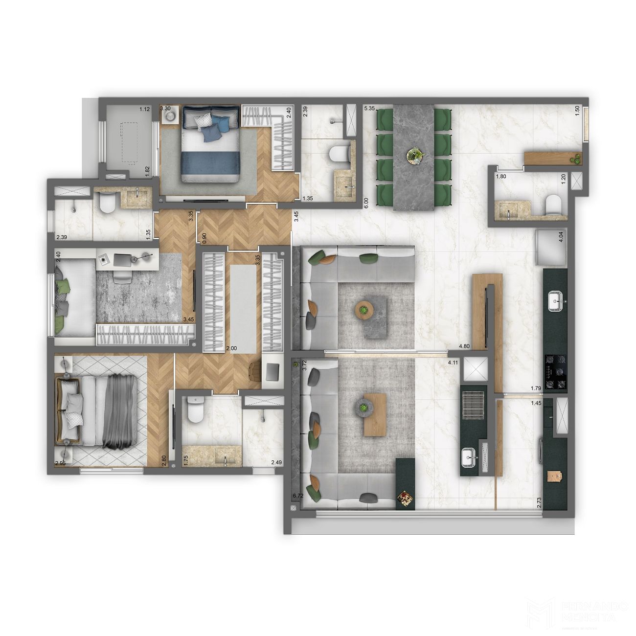 • 40 unidades de 120 m² – 3 suítes ou 4 dormitórios (2 suítes) – 2 vagas