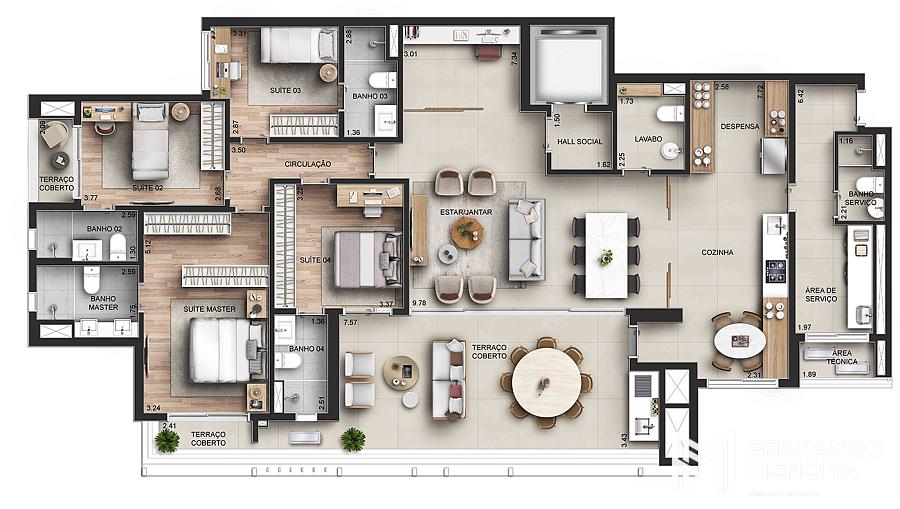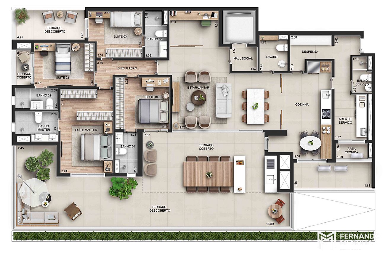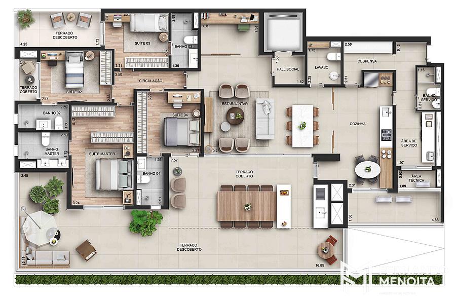 • 281 m² | Giardino (finais 02 e 03) | 4 suítes | 02 un.