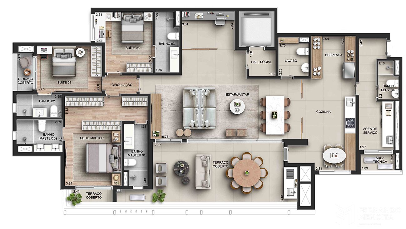 • 210 m² | 4 suítes | Unidades tipo | 88 un.