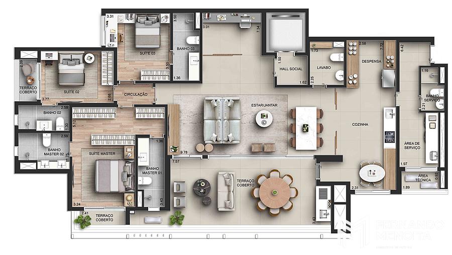 • 207,34 m² unidade privativa + 2,74 m² hall social exclusivo