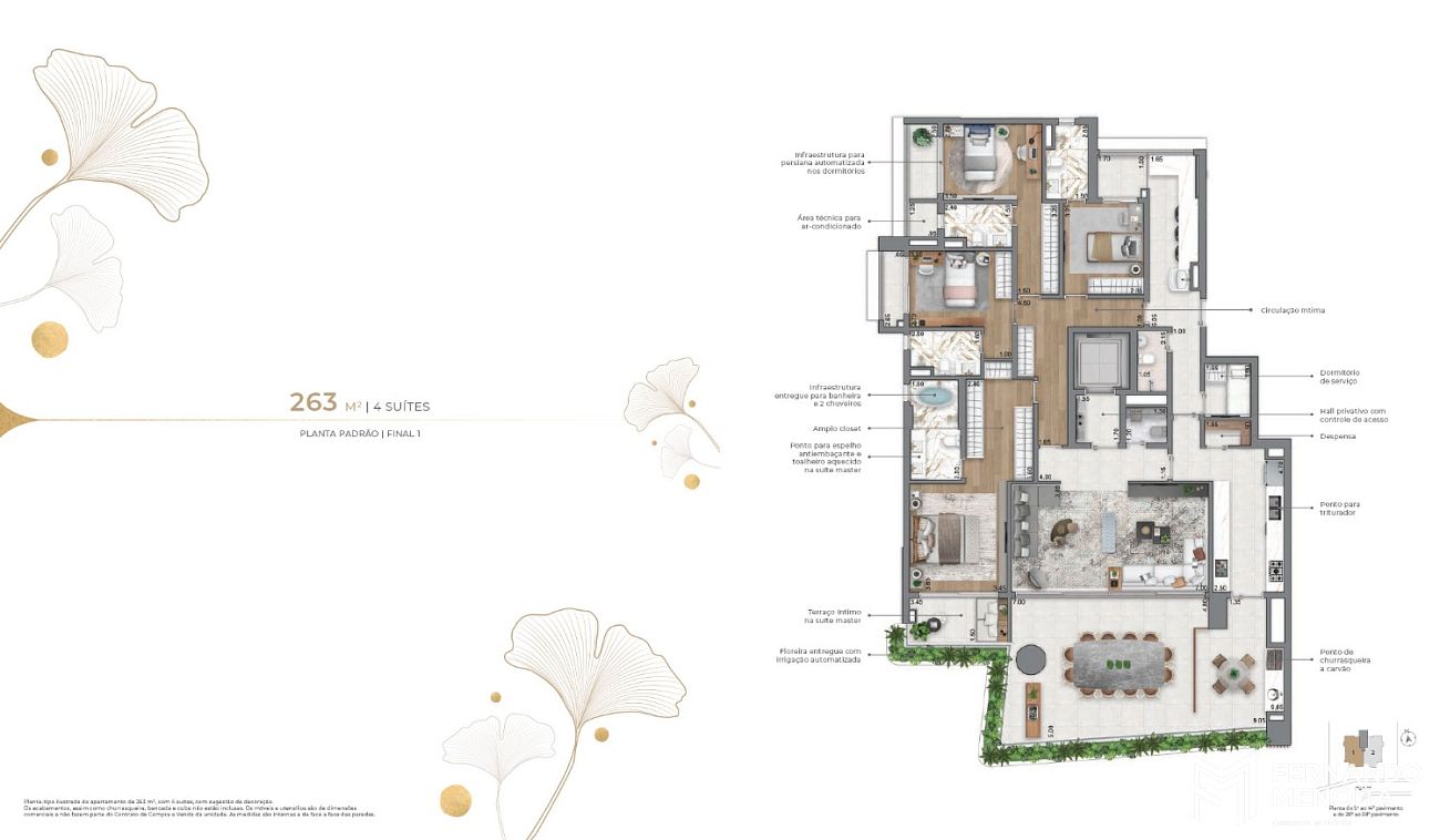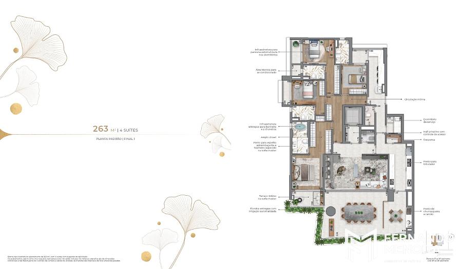 • 263 m²: 4 suítes (planta padrão)