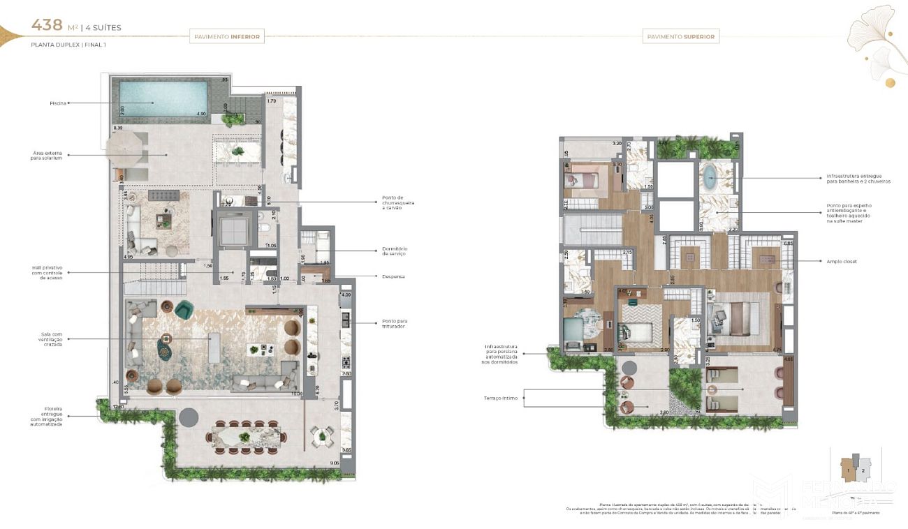 • 438 m²: 4 suítes (duplex)