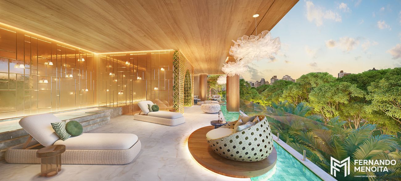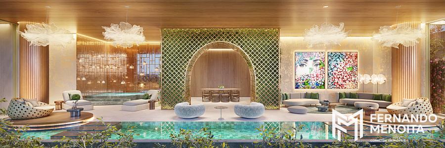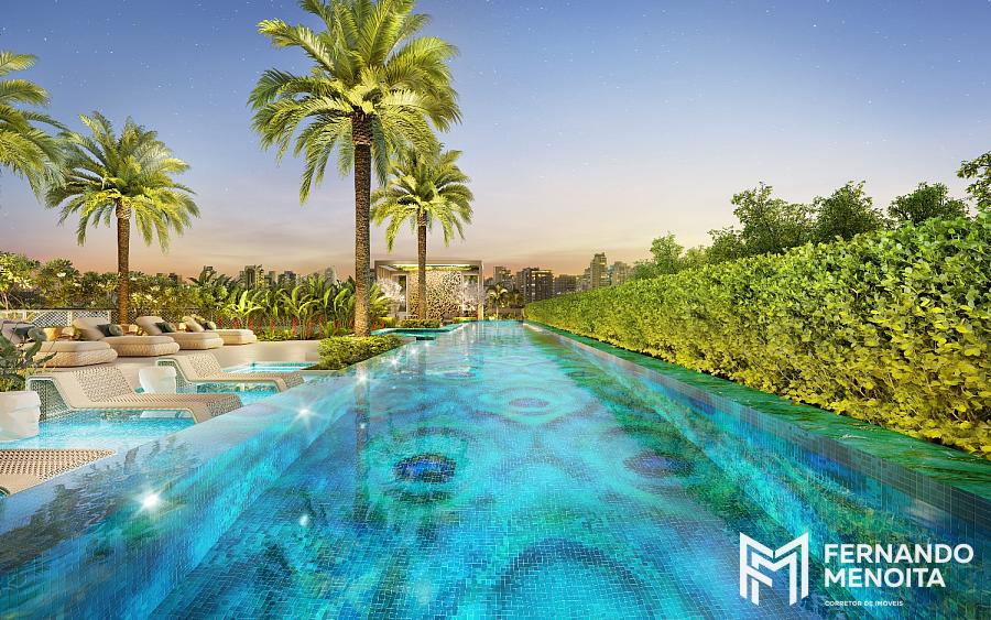 O lazer é completo e elevado a um padrão de resort urbano, com piscina externa com raia de 25 metros, spa, quadras esportivas, lounges sofisticados e espaços dedicados ao bem-estar e convivência.
