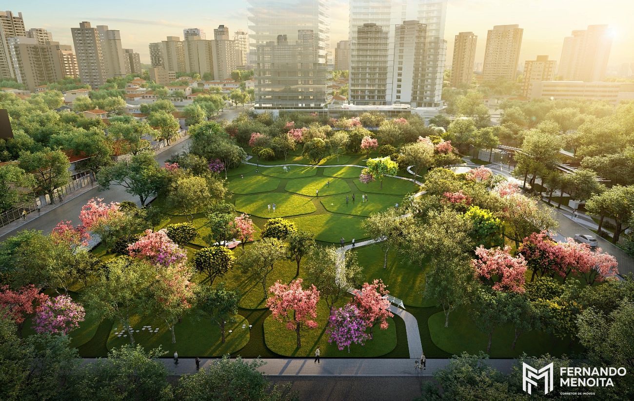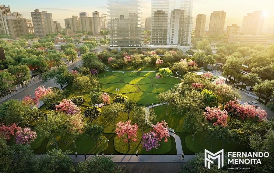 Inspirado na lógica da natureza e concebido como a cidade do futuro, o empreendimento posiciona um parque central como protagonista, com mais de 12.000 m² entre áreas verdes, passeios e fruição, além de um pulmão verde com mais de 8.300 m², criando um ambiente único dentro da cidade.