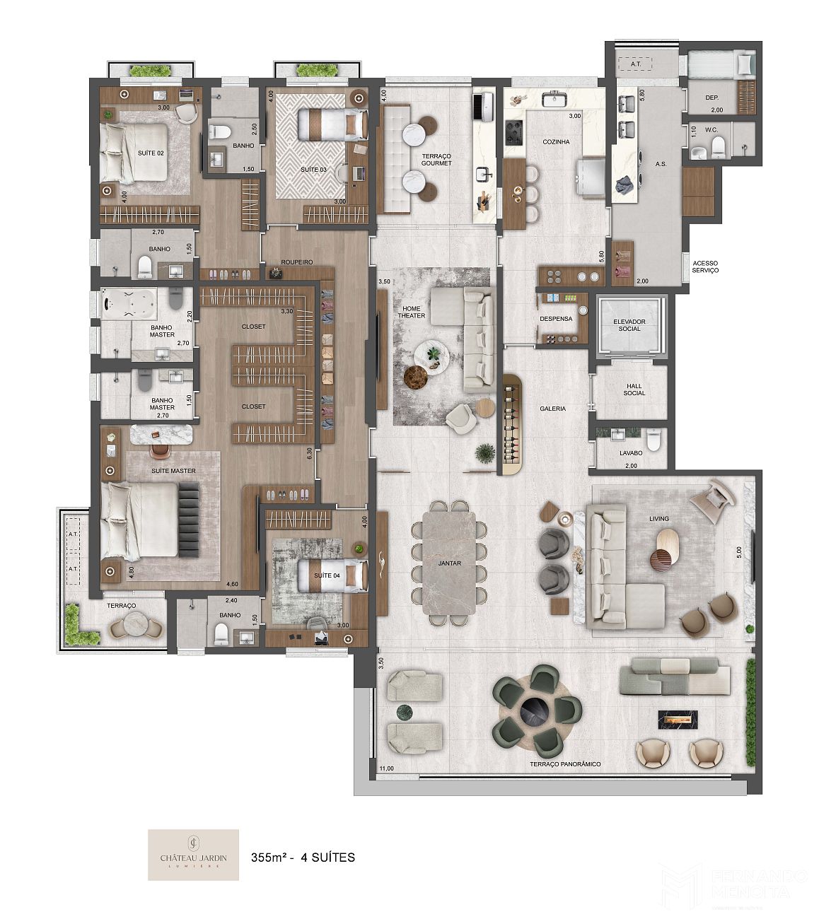 O Château Jardin Lumière nasce como um dos projetos mais emblemáticos do Novo Eixo Cidade Jardim, traduzindo a união entre arquitetura clássica, paisagismo autoral e sofisticação contemporânea. Inspirado nos grandes palácios europeus, o empreendimento ressignifica o conceito de morar com elegância, criando um verdadeiro refúgio urbano em uma das regiões mais valorizadas de São Paulo.