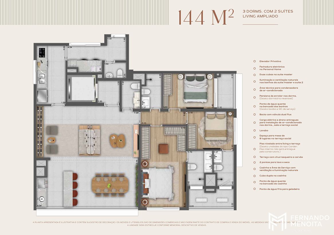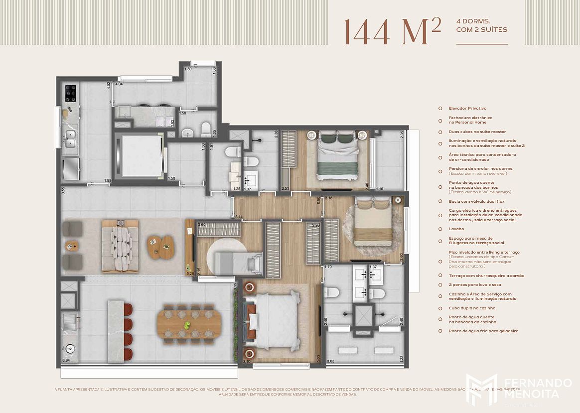 • 144 m² – 3 Suítes ou 4 Dorms.