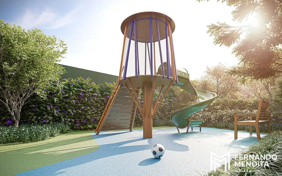 O projeto conta ainda com soluções sustentáveis como reaproveitamento de águas pluviais, iluminação LED nas áreas comuns e previsão para sistema de aquecimento solar, além de diferenciais de segurança como portarias blindadas, controle de acesso biométrico e infraestrutura para CFTV.