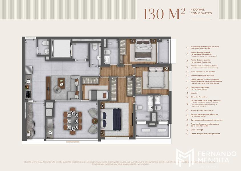 • 130 m² – 3 Suítes ou 4 Dorms.