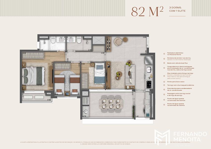 • 82 m² – 3 Dorms. com 1 Suíte