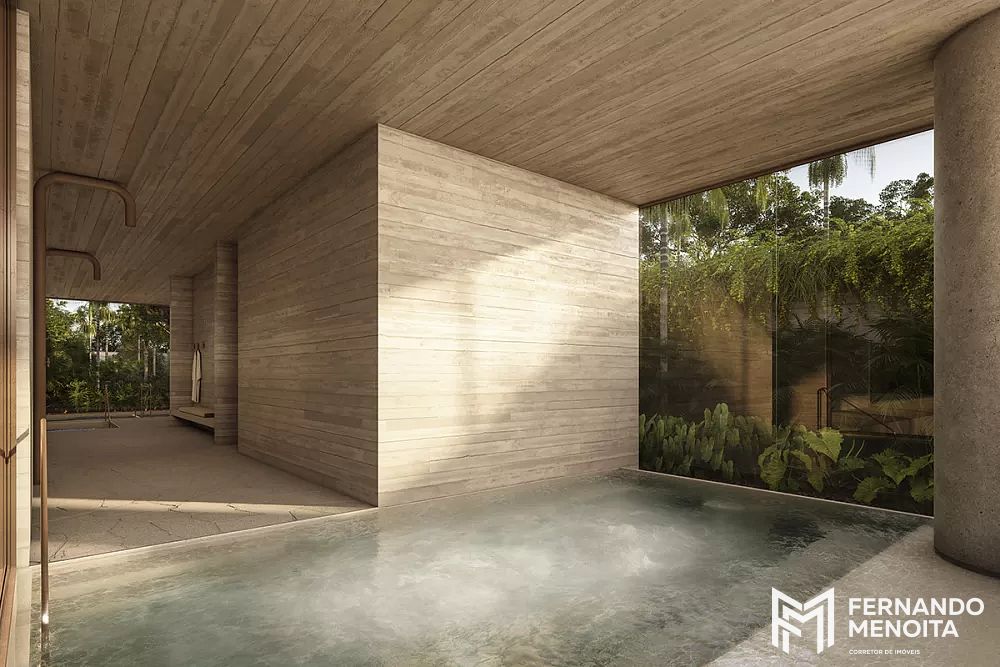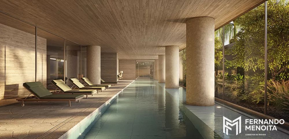 Além do spa, o projeto oferece uma infraestrutura de lazer extremamente sofisticada, com quadra de tênis oficial de saibro coberta — única na região —, piscinas coberta e descoberta com raia de 25 metros, solarium, fitness completo com mais de 300 m² equipado com Technogym, sala de pilates e personal, salão de festas, brinquedoteca, playground, espaço beauty, pet place e áreas dedicadas ao convívio familiar.