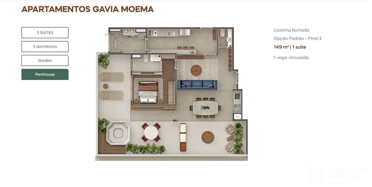 • Penthouse (1 suíte): 128 m², 147 m² e 149 m² | 1 vaga