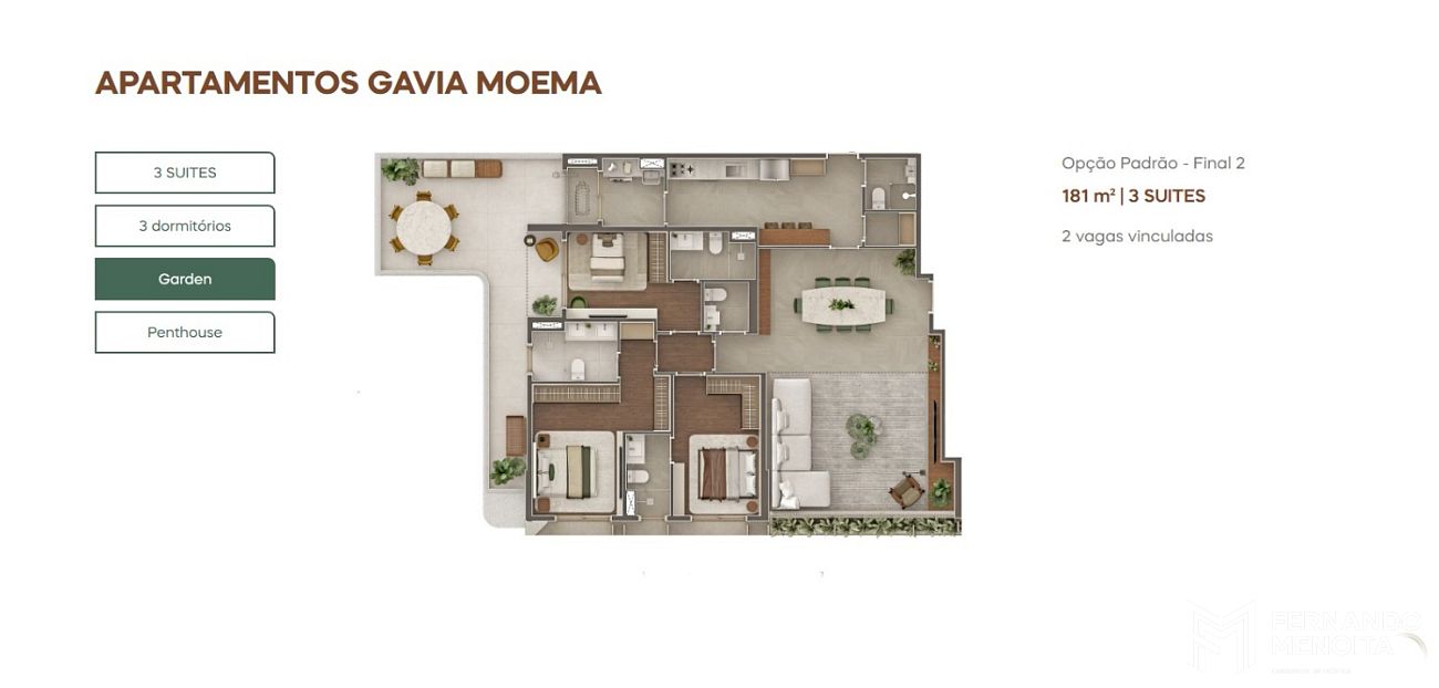 • Garden 3 suítes: 178 m² e 181 m² | 2 vagas