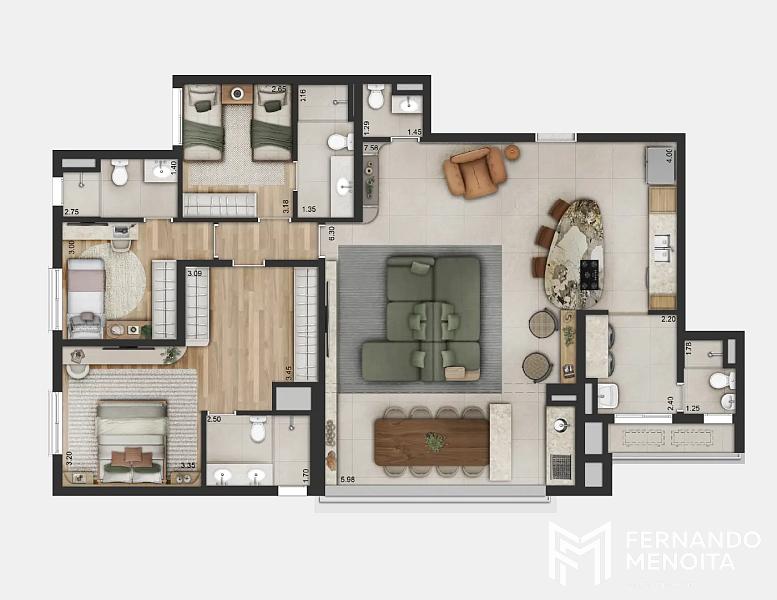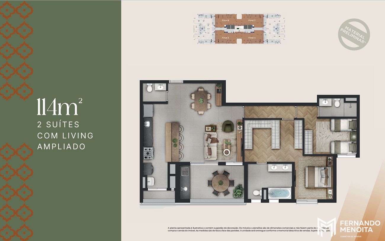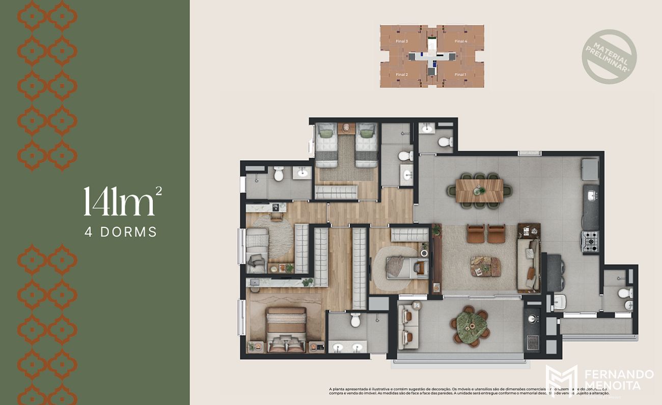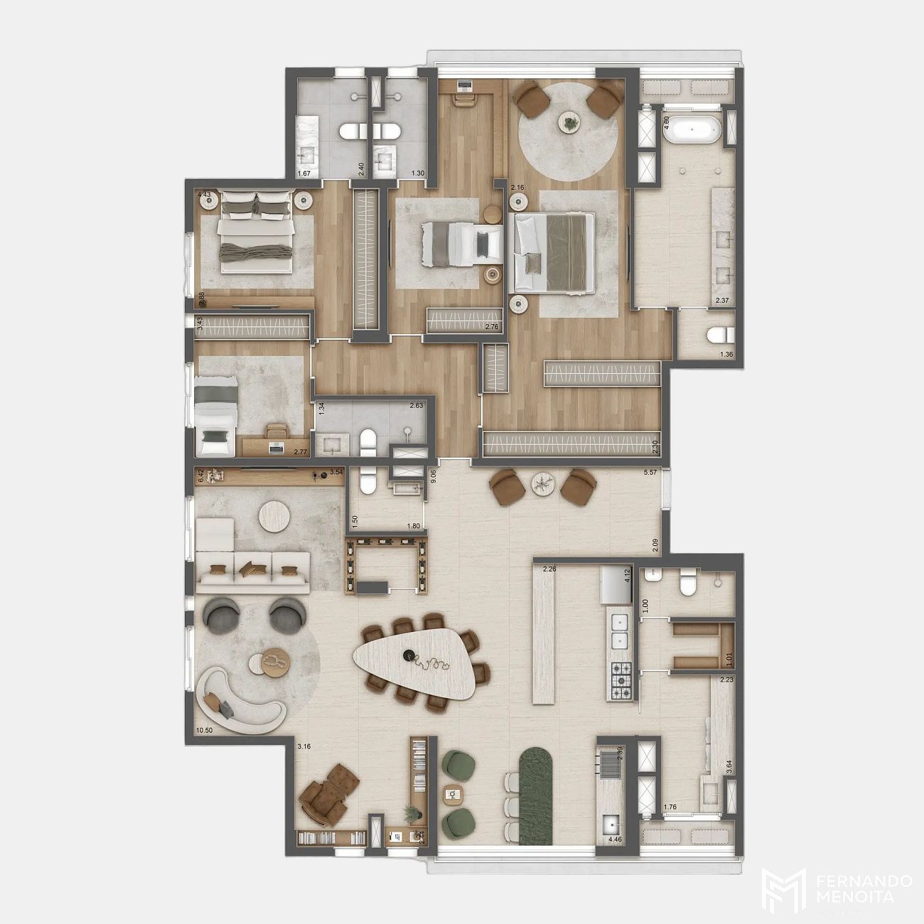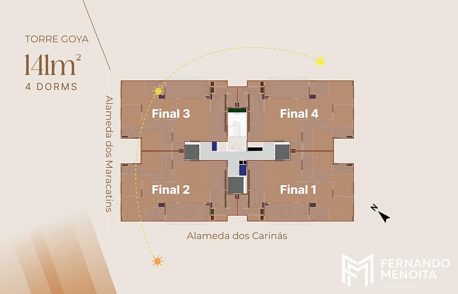 Com 2 torres – Picasso e Goya, o projeto oferece plantas amplas de 114m² (3 suítes) e 141m² (4 dormitórios), com layouts inteligentes que equilibram estética, funcionalidade e conforto. Os apartamentos foram pensados para valorizar iluminação natural, integração dos ambientes e elegância em cada detalhe.