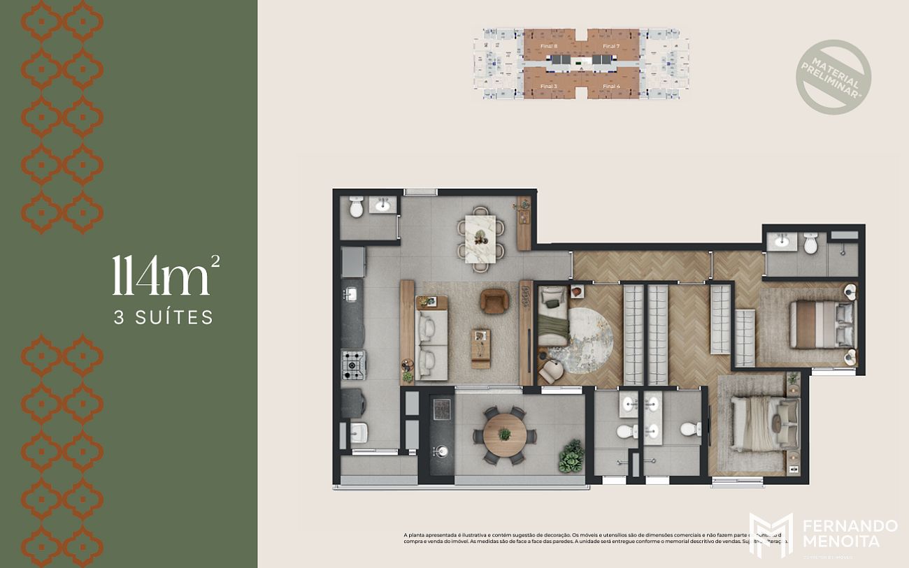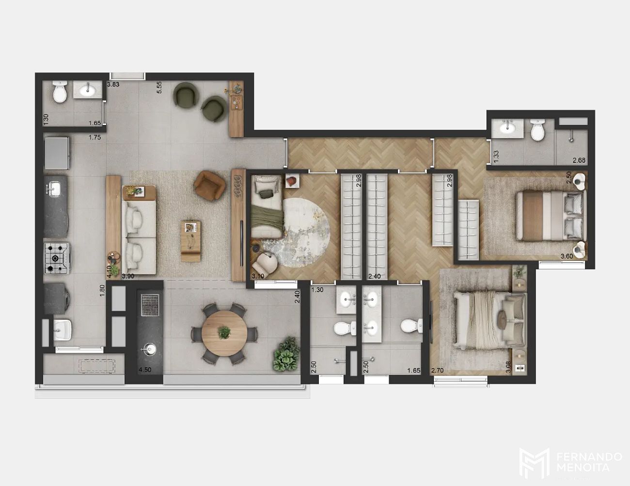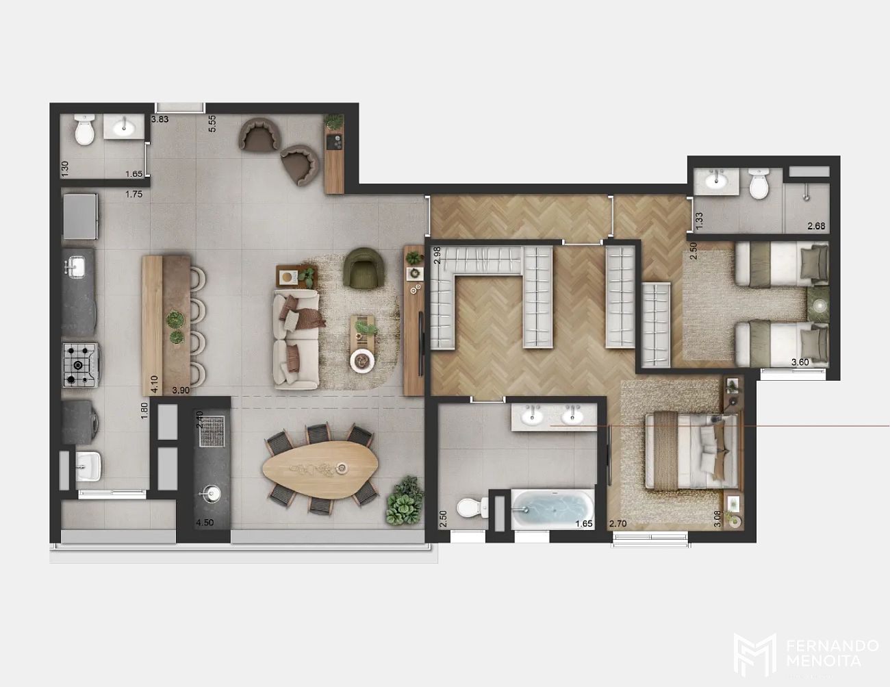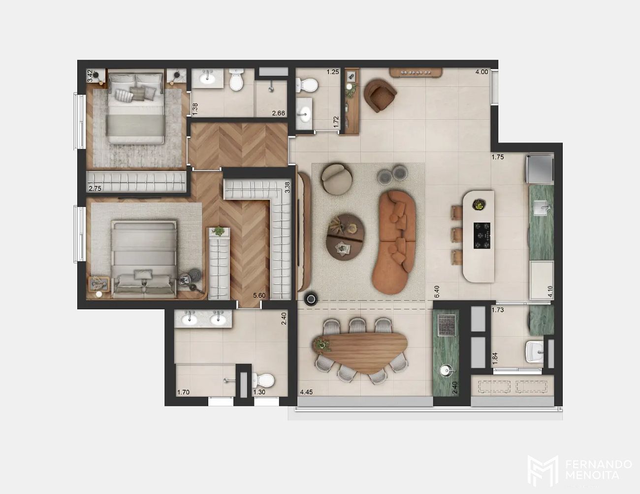 Com 2 torres – Picasso e Goya, o projeto oferece plantas amplas de 114m² (3 suítes) e 141m² (4 dormitórios), com layouts inteligentes que equilibram estética, funcionalidade e conforto. Os apartamentos foram pensados para valorizar iluminação natural, integração dos ambientes e elegância em cada detalhe.